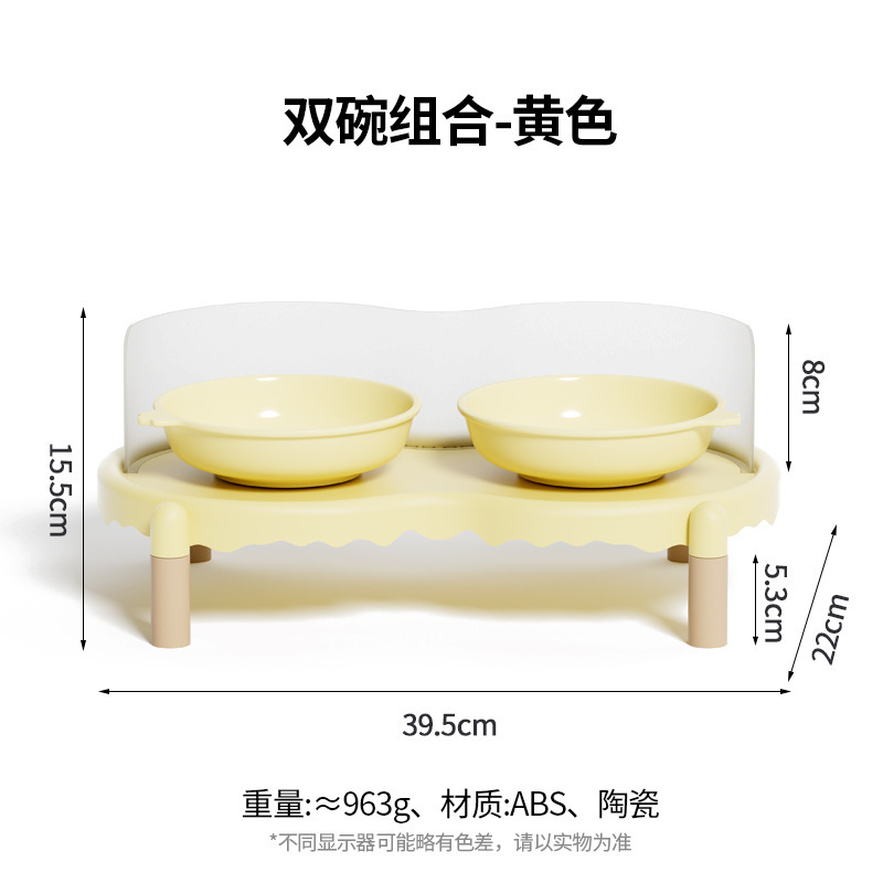 Double bowl set, cat food bowl combination, ceramic tableware set, Nordic handle plate, underglaze process pet supplies