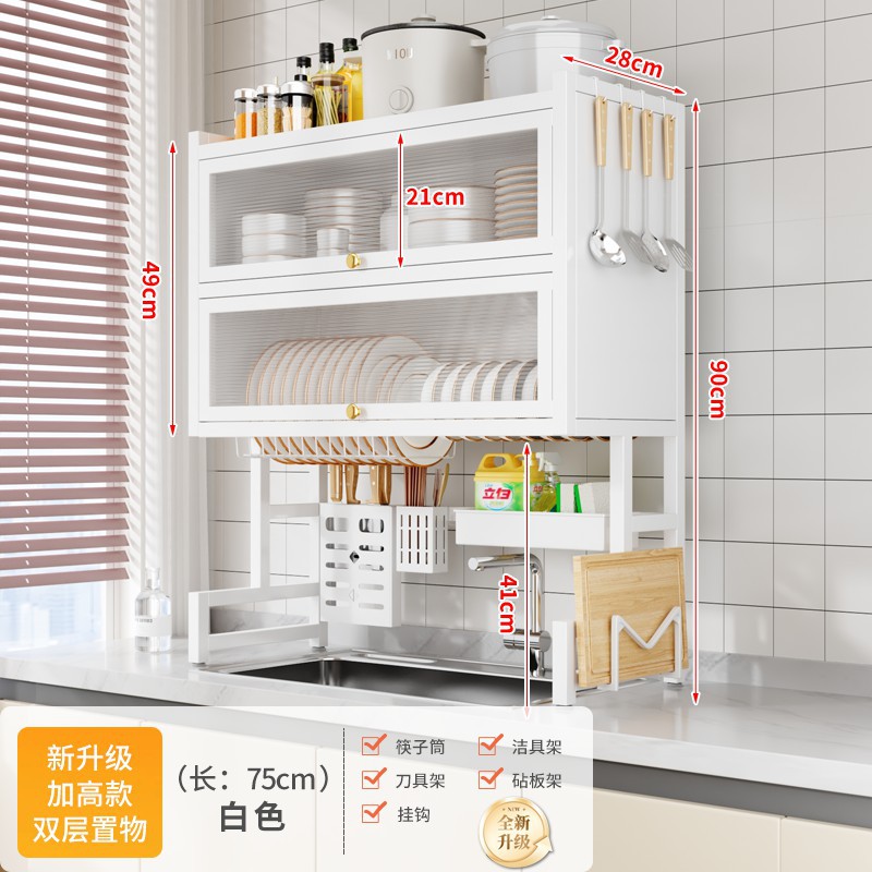 Double-layer kitchen sink rack, dishwashing sink, sink countertop, dust-proof bowl cabinet, tableware storage, and draining rack