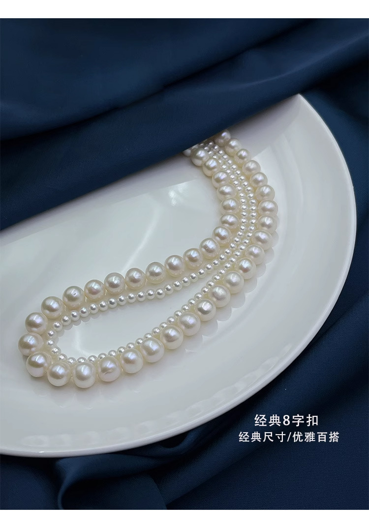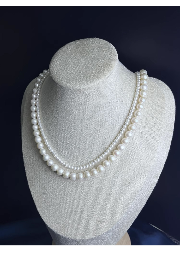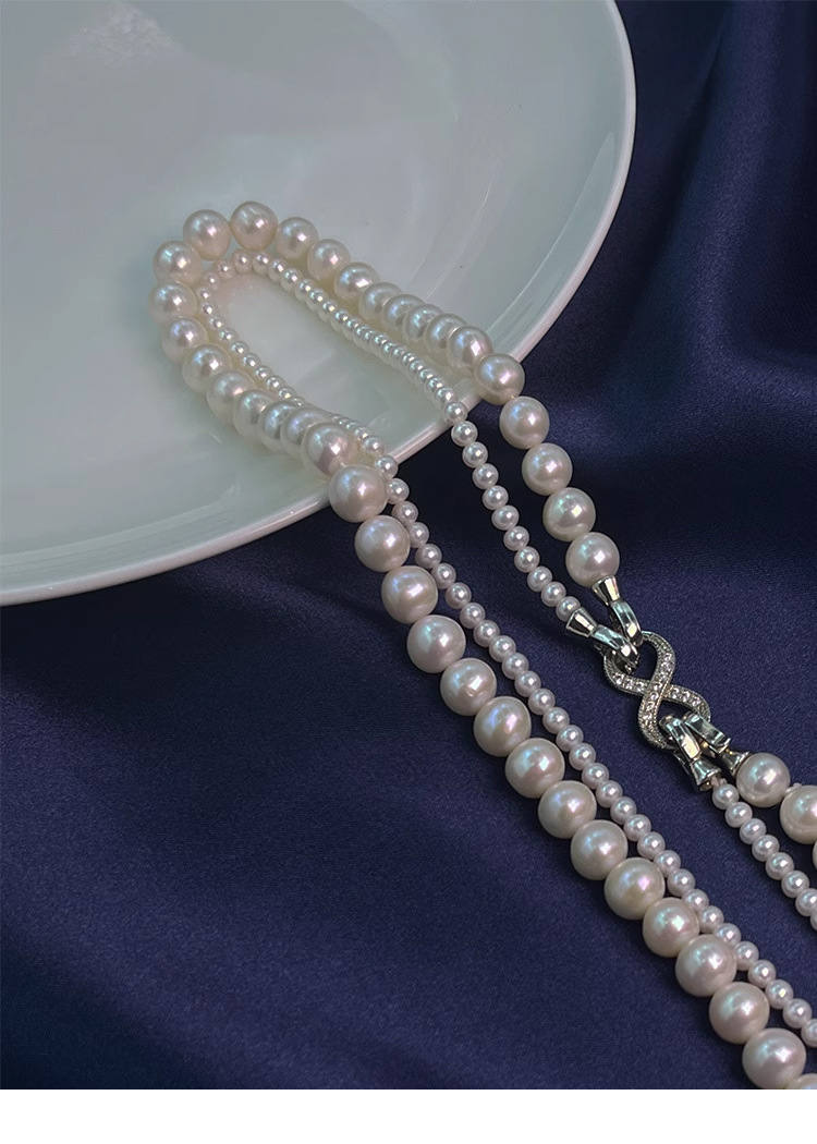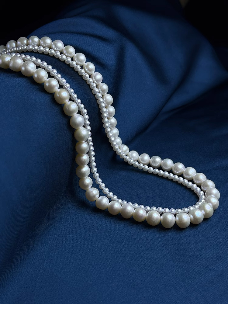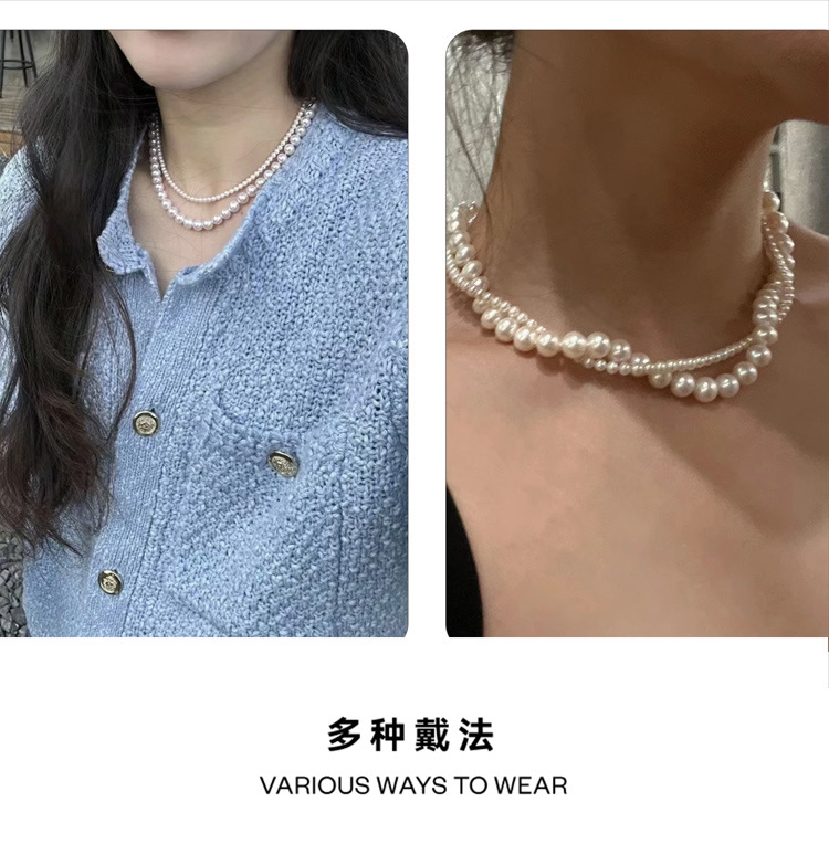 Double-layer pearl necklace that doesn't fade, a high-end, light luxury beaded sweater necklace for women in autumn and winter, a simple accessory