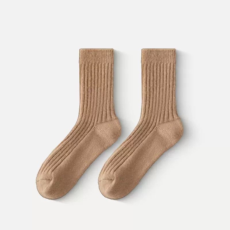 Double-needle socks for women's autumn and winter bestsellers, fleece and thickened wool socks, Japanese-style solid color thick-needle mid-calf socks for children