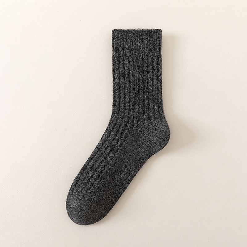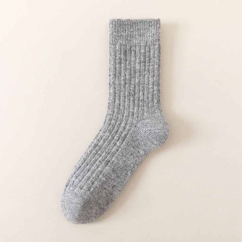 Double-needle wool socks for men's autumn and winter, thickened and fleece casual business socks, comfortable, warm and simple medium to long cashmere socks