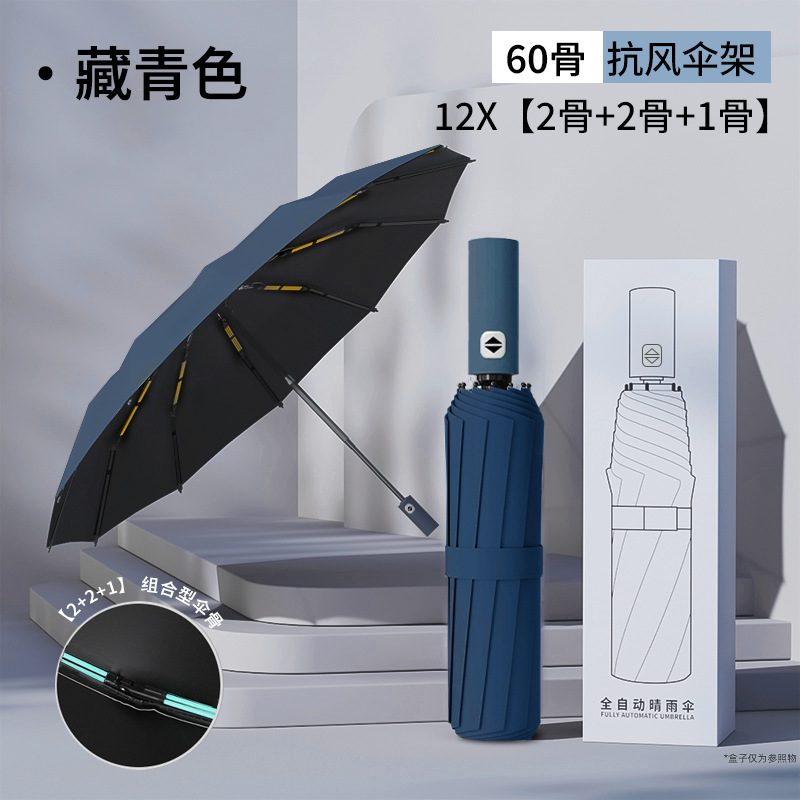 Navy blue [Automatic opening and closing + 10-bone reinforced double Umbrella]