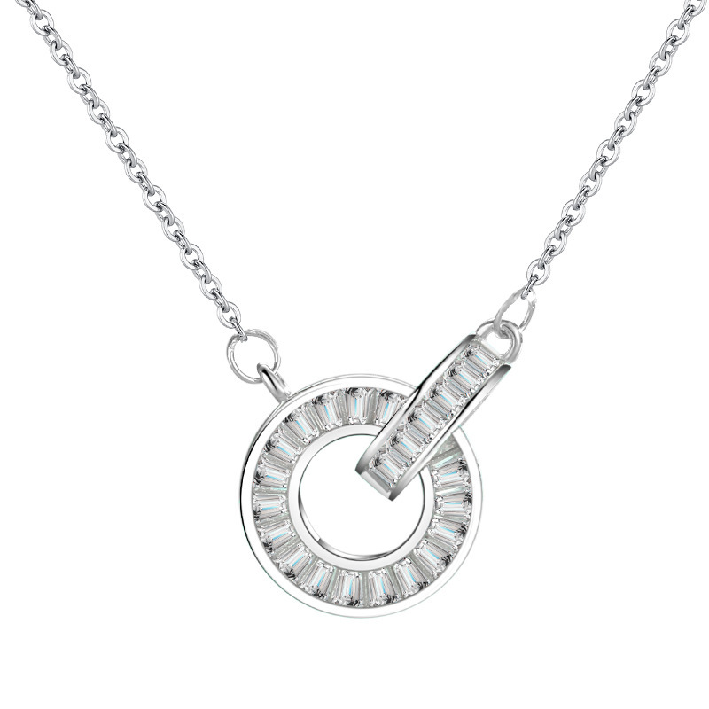 Double-ring necklace for women, retro D-shaped interlocking zircon pendant, trendy and niche sweater chain accessory wholesale