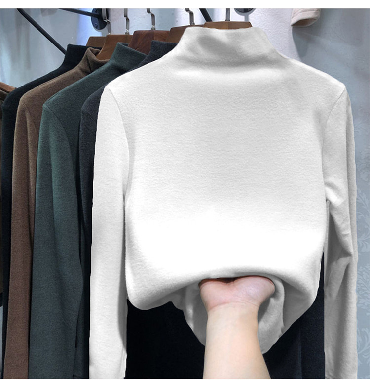 Double-sided German velvet base shirt for women's autumn and winter, semi-high-neck women's top, design sense, niche warmth, long-sleeved T-shirt for women