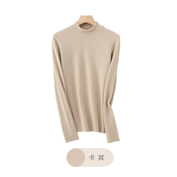 Double-sided German velvet hyaluronic acid beauty garment, semi-high-neck underwear, long-sleeved women's base layer, high-elastic fleece warm top