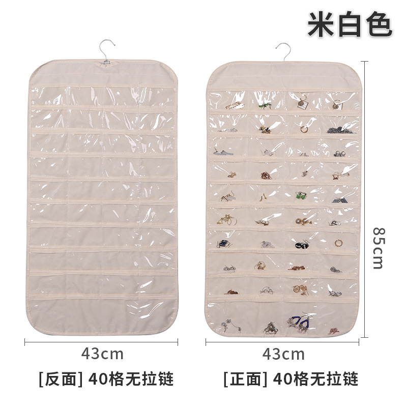 Double-sided non-woven fabric jewelry and accessory storage bag with 80 compartments, jewelry and miscellaneous items organization and storage hanging bag, small item storage bag