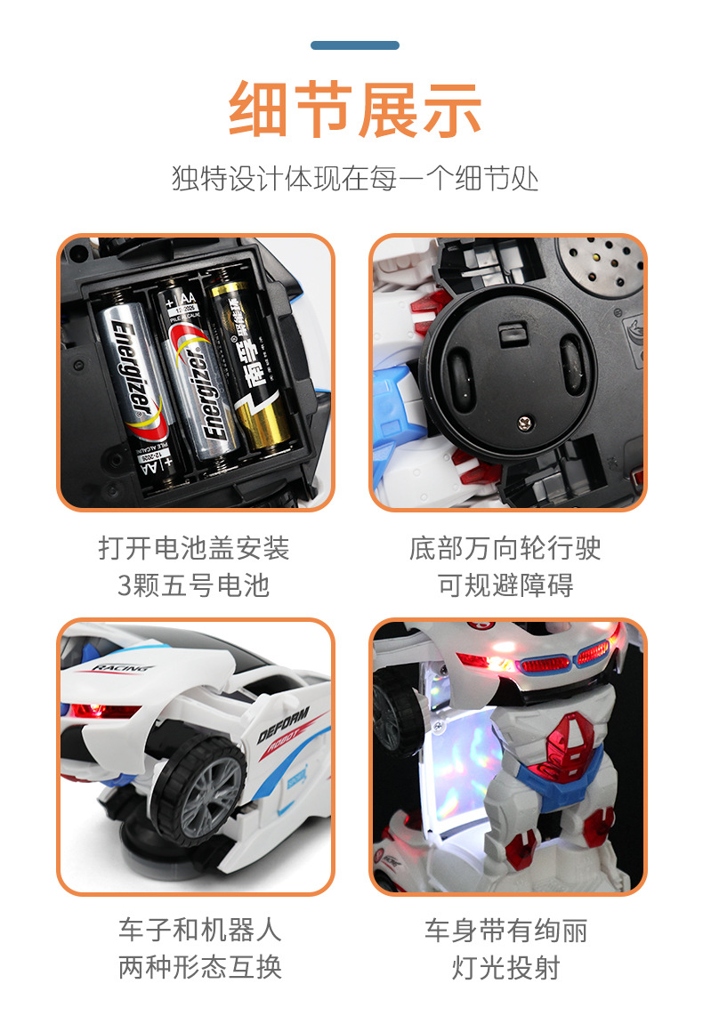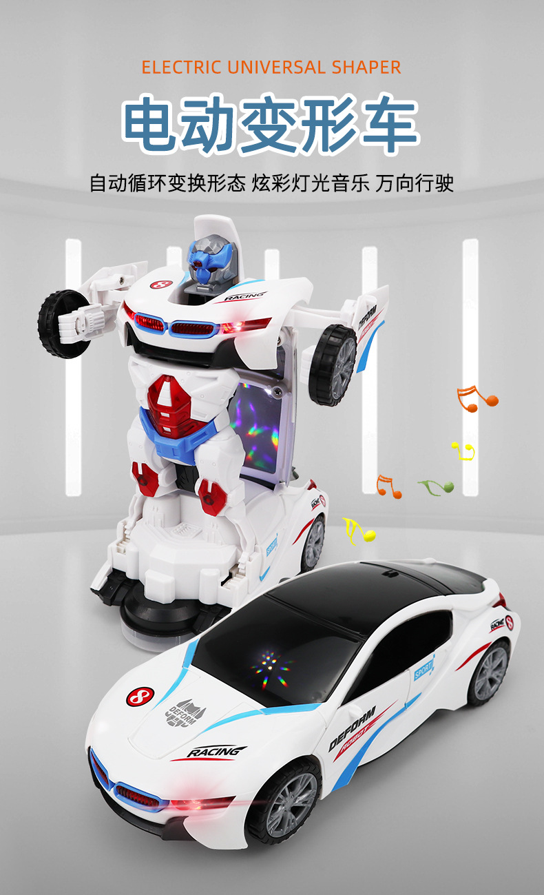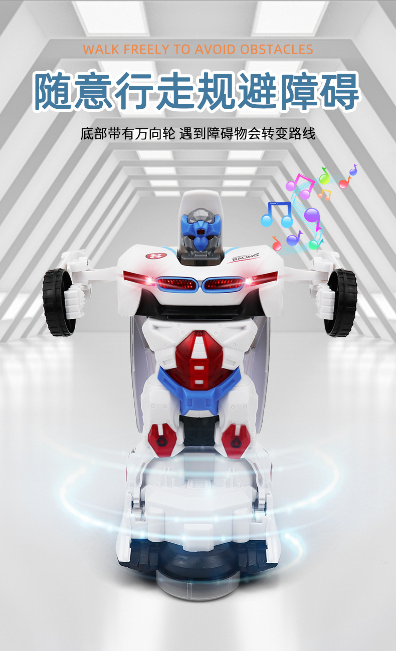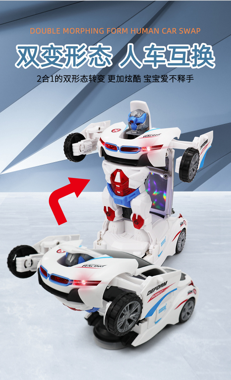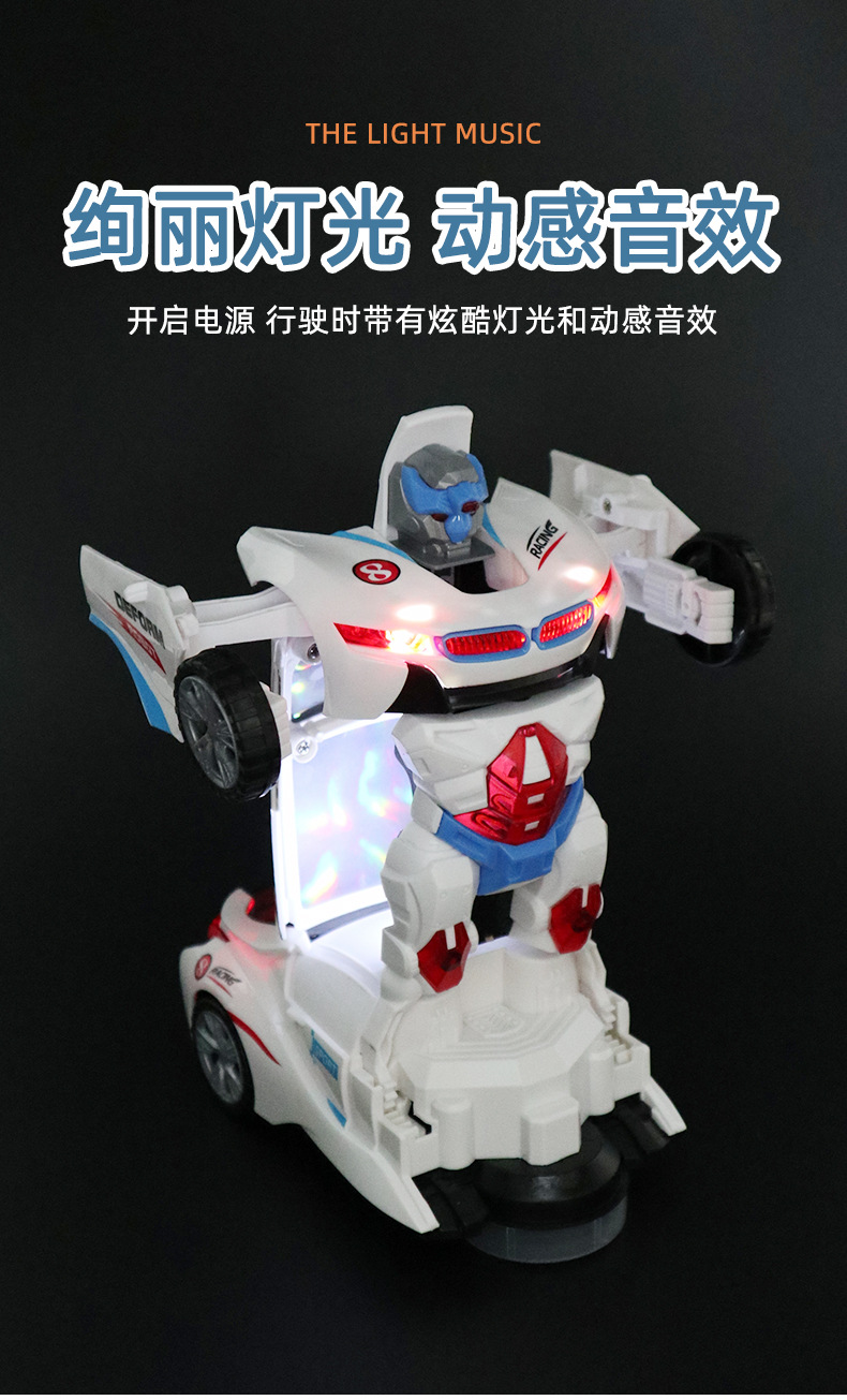 Douyin electric universal toy car model, transforming rotating robot, children's toy, sound and light car, boys and girls