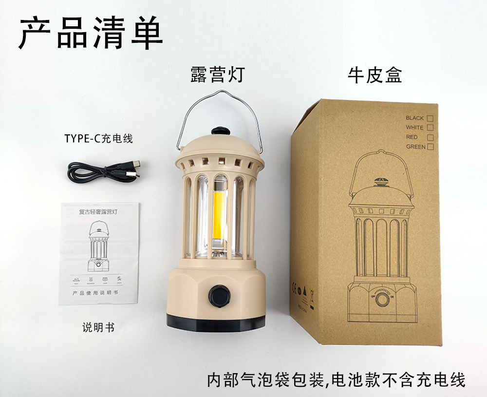Douyin's new outdoor camping lamp, camping lamp, atmosphere tent lamp, retro horse lamp, COB lighting, portable campsite lamp