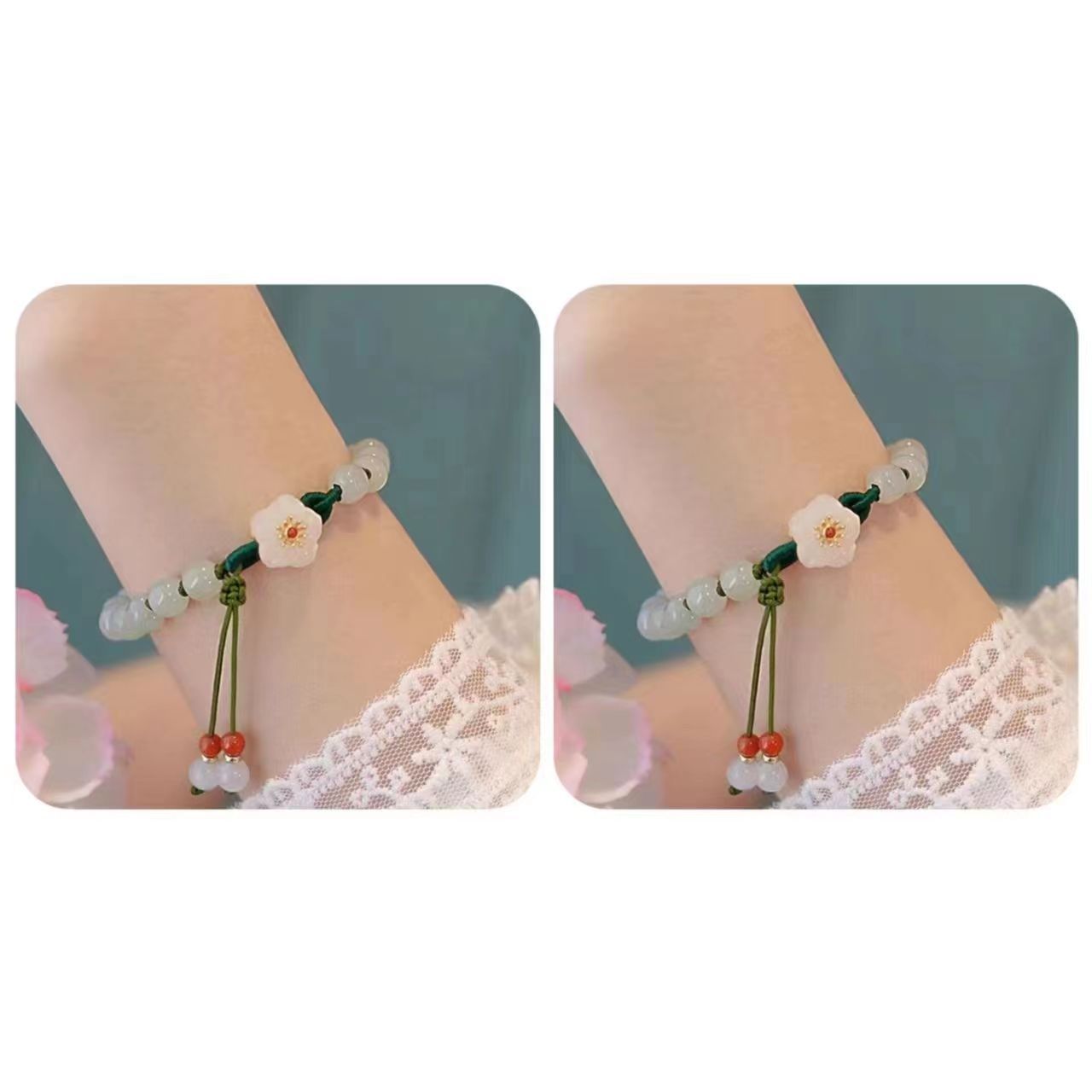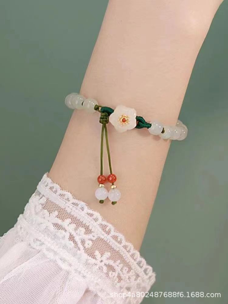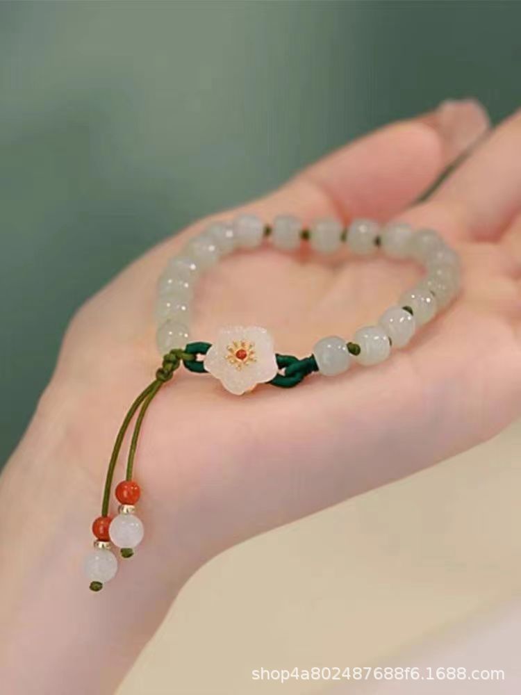 Douyin's same style jade round bead small peach blossom woven bracelet, a unique female design, student best friend gift