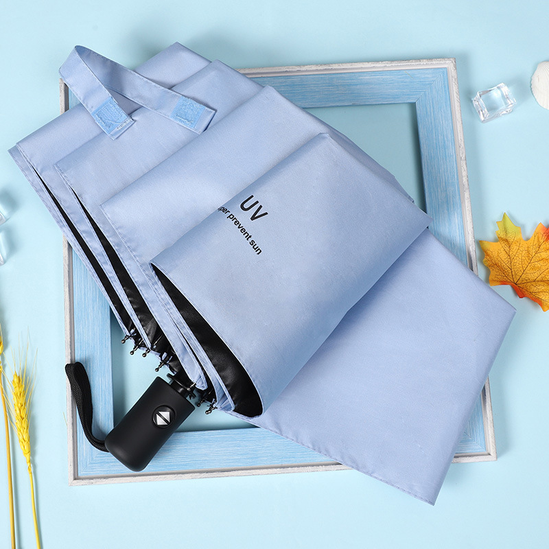 8-bone UV black vinyl nine-in-one manual large umbrella - Sky blue