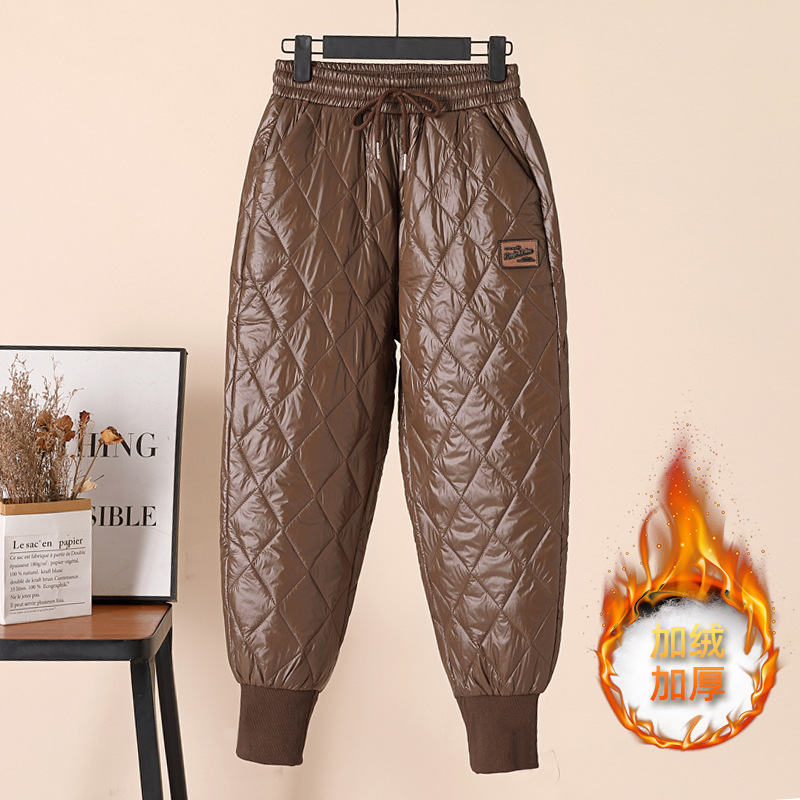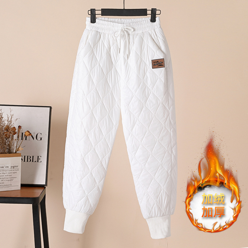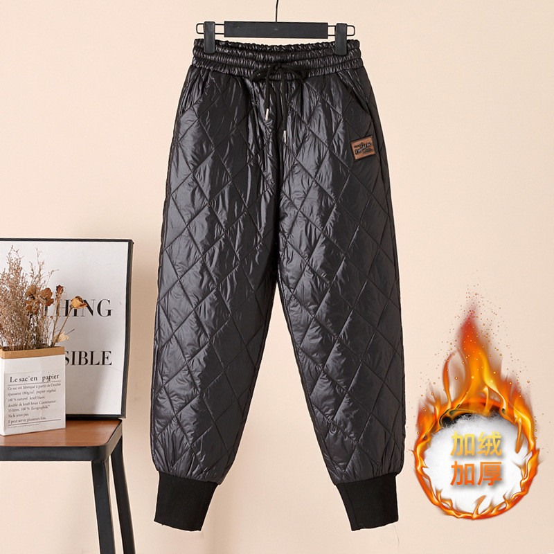 Down cotton pants for women to wear in winter: high-waisted, slimming casual pants with fleece and thickened halen tight-fitting large-sized thermal pants