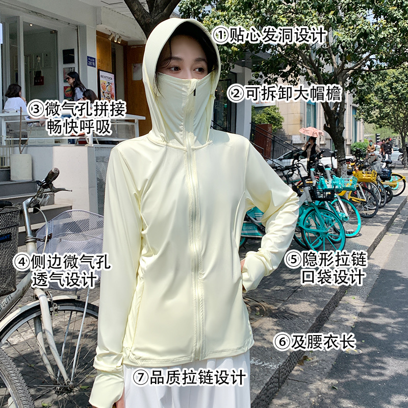 Yellow brim sun-protective clothing for women, summer outdoor sun-protective clothing, skin clothing, UV-resistant loose gauze cool outerwear