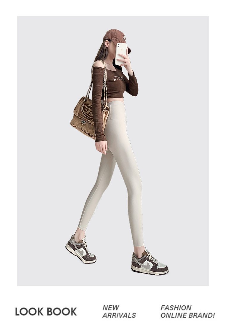 Nude shark pants for women, spring and autumn colorful stretch tight slimming leggings, belly cinching and hip lifting yoga Barbie pants