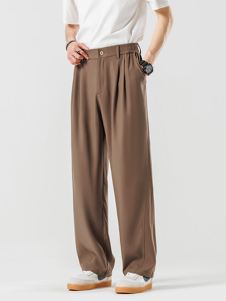 Drape casual suit pants for men in summer, thin ice silk loose drape, brown high-end straight-leg long pants