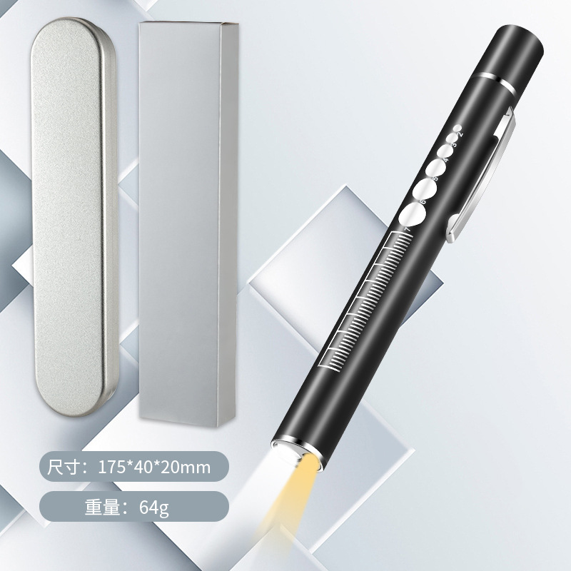 Dual-source pupil pen light, rechargeable, medical nurse stainless steel medical staff oral examination LED pen light flashlight