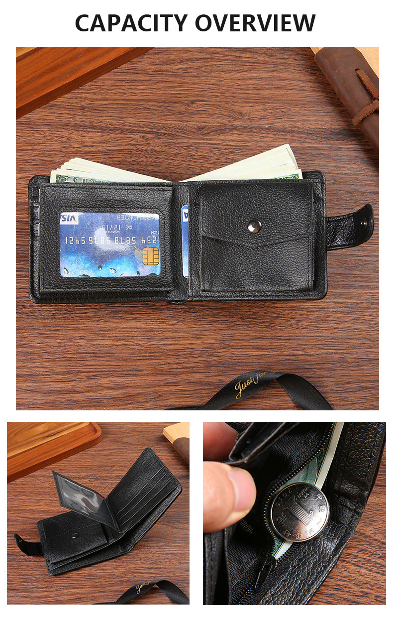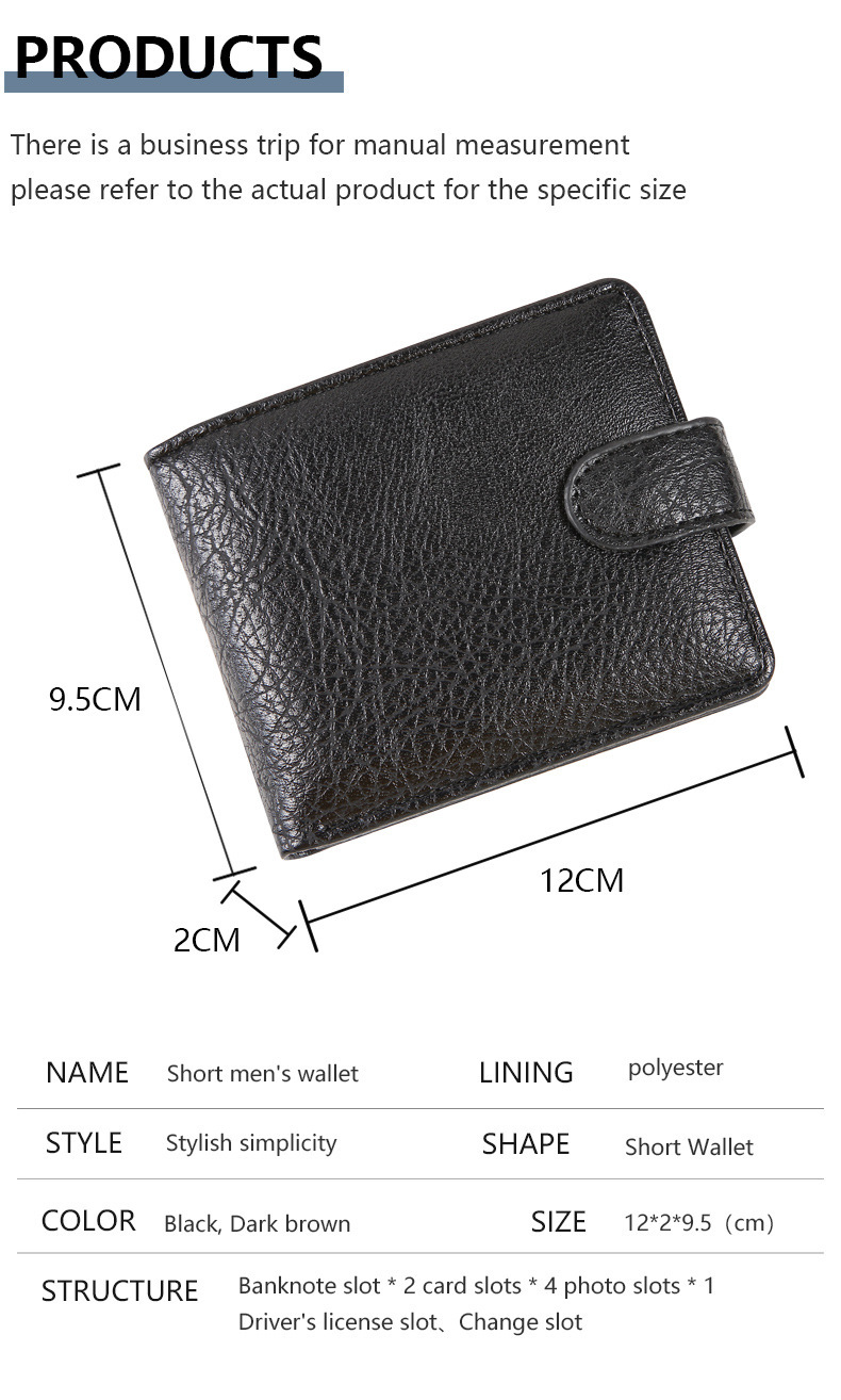 Durable zipper buckle PU leather short wallet, coin purse with multiple positions, factory direct sales for cross-border men's trade