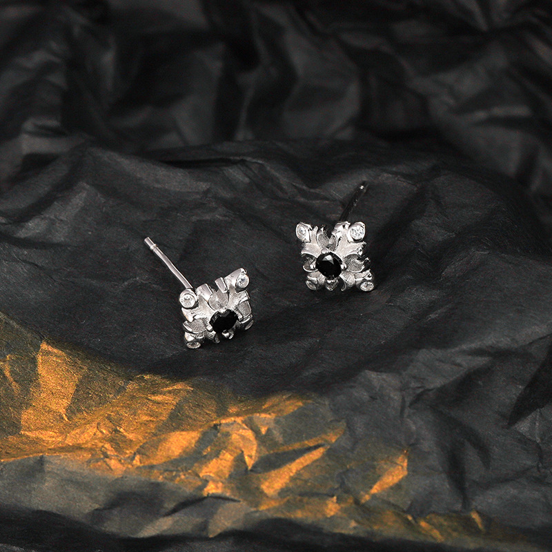 E1431 New Chinese style simple S925 pure silver diamond-encrusted pattern ear studs for women, small and delicate ear studs with Chinese style