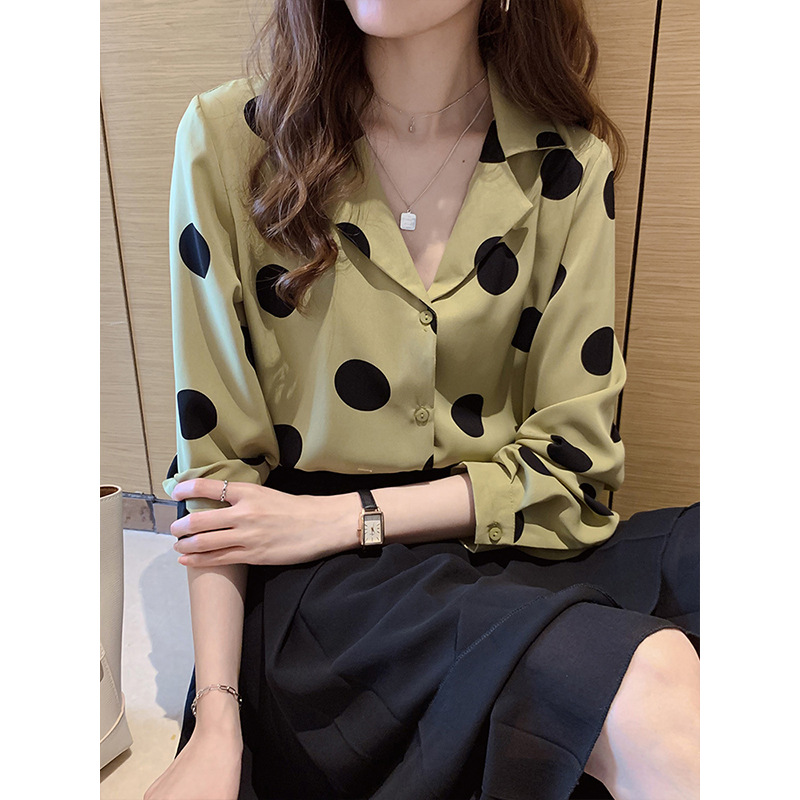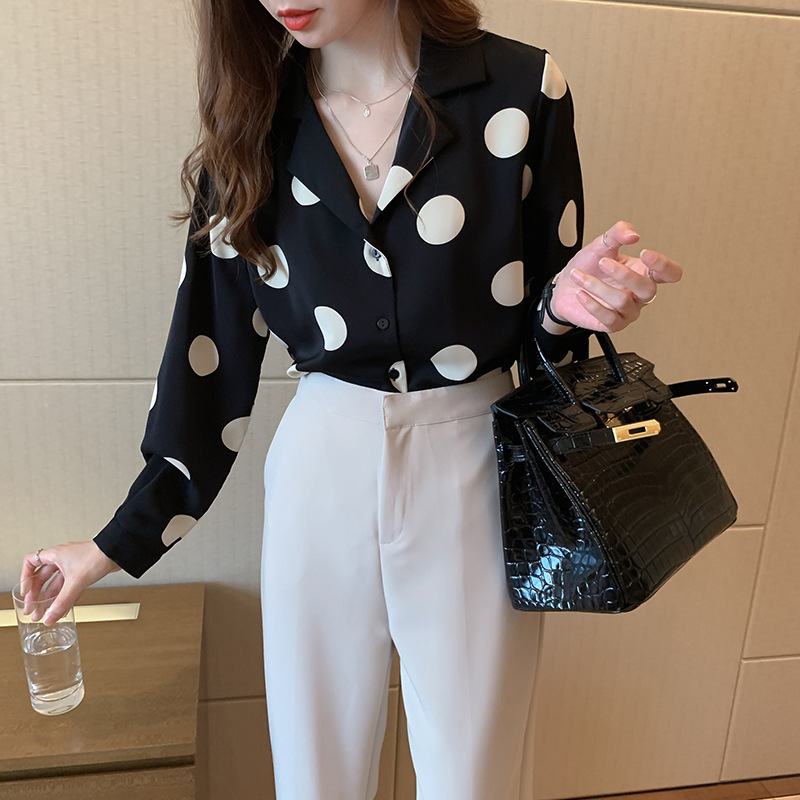 Early autumn new polka dot shirt for women 2021 New style Hong Kong-style retro top design sense, niche light mature chiffon shirt