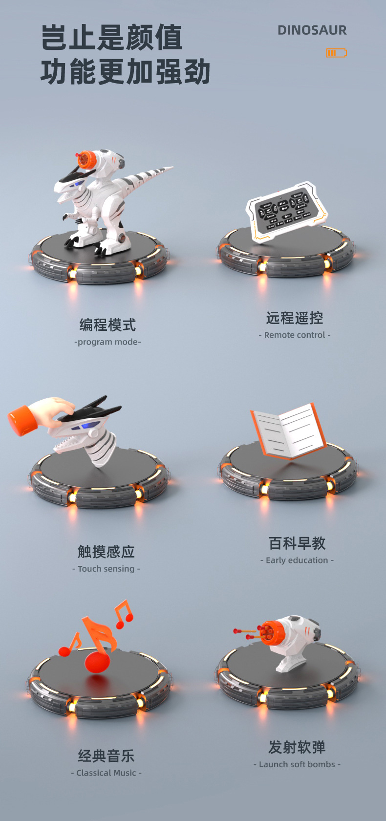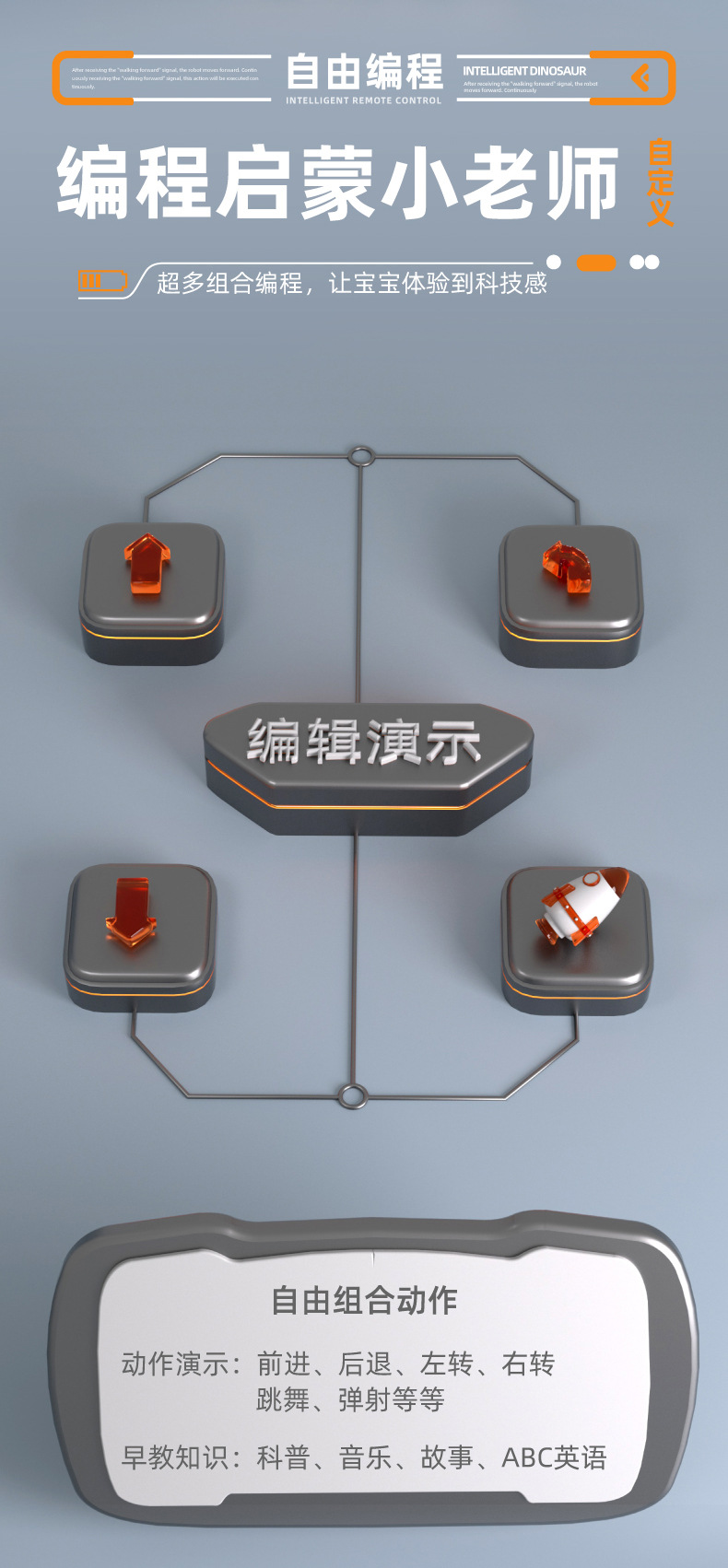 Early education intelligent remote control dinosaur toy, electric robot programming simulation animal Velociraptor, children's toy gift