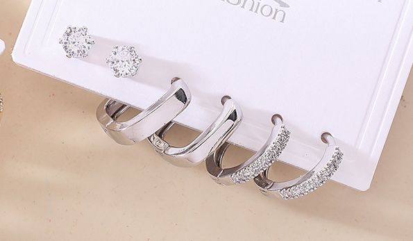 Fashionable and exquisite zirconium-inlaid three-pair ear buckle earrings with a light luxury and high-end feel, personalized commuter earrings