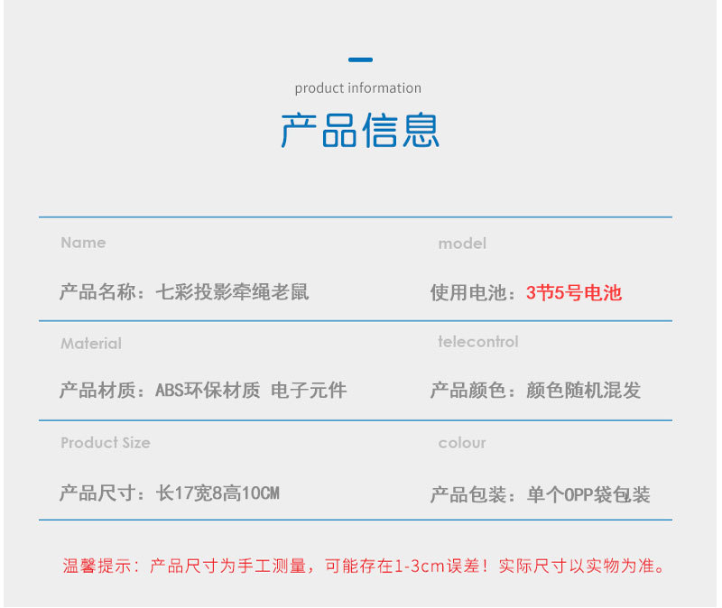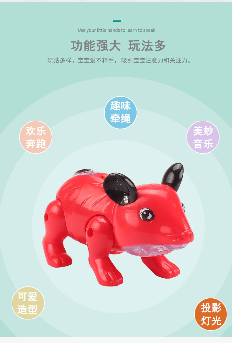 Electric leash mouse, music, luminous projection mouse, 2020 Year of the Rat, hot-selling children's street stall wholesale supply