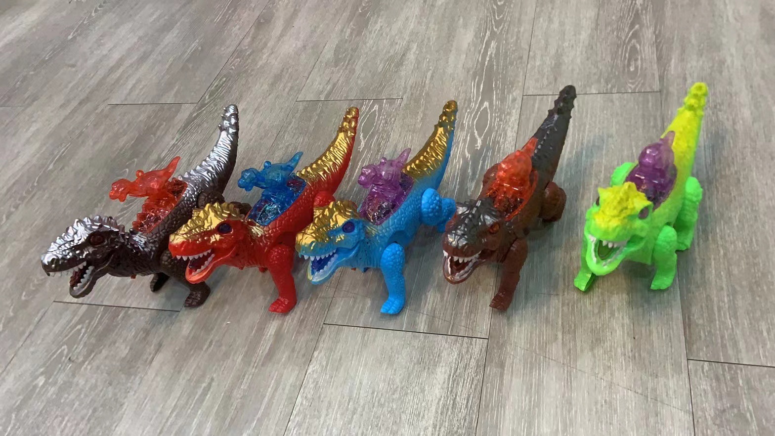 Electric rope mechanical dragon mother and baby dinosaur toys are selling well at night market stalls. Children's gifts for boys are available for wholesale from manufacturers