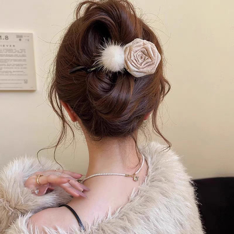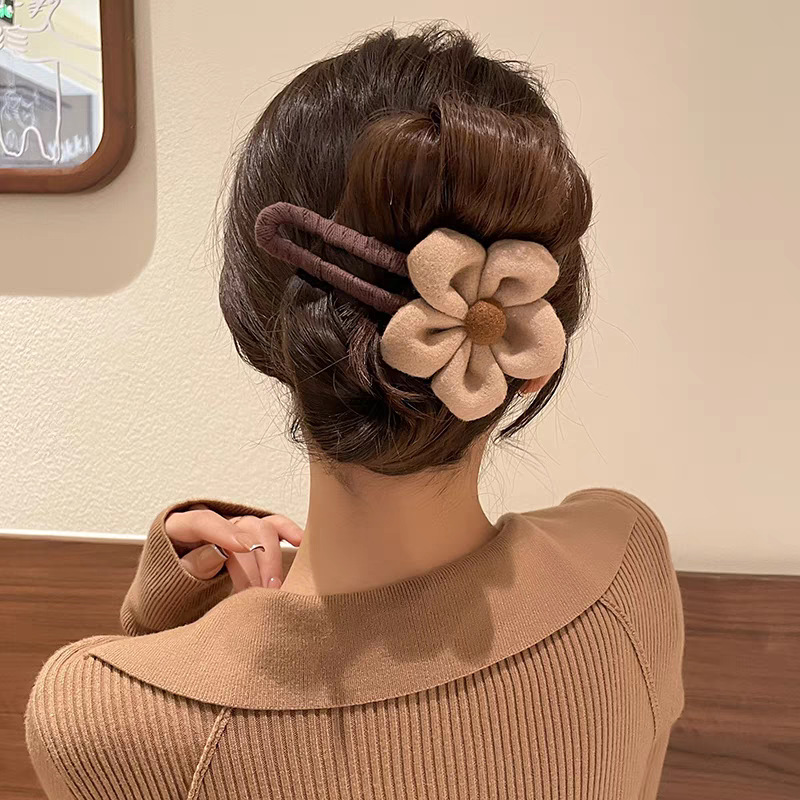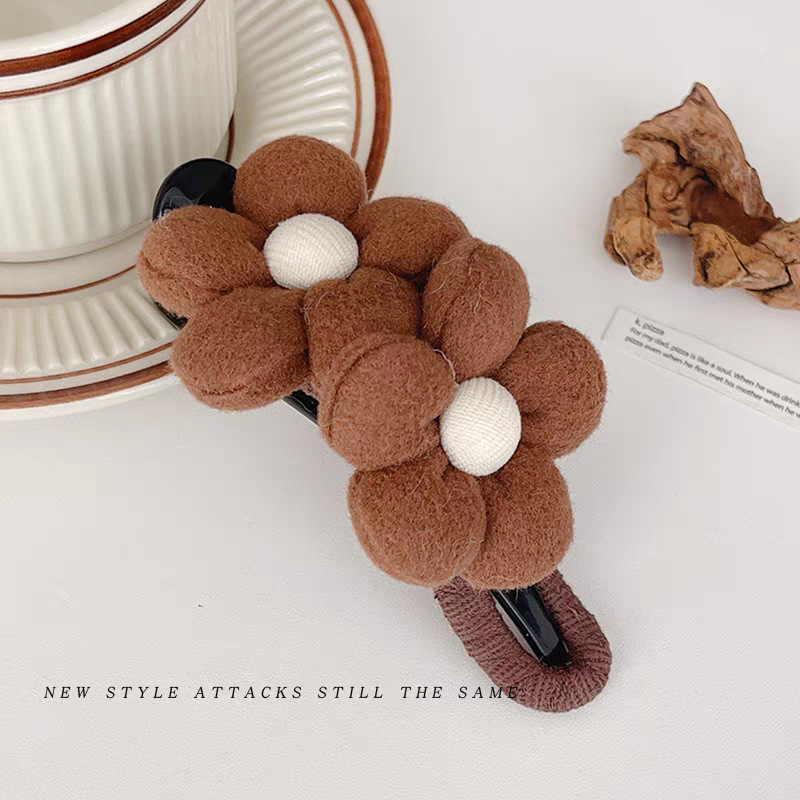 49# Coffee-colored wool flower duckbill grab, 12cm