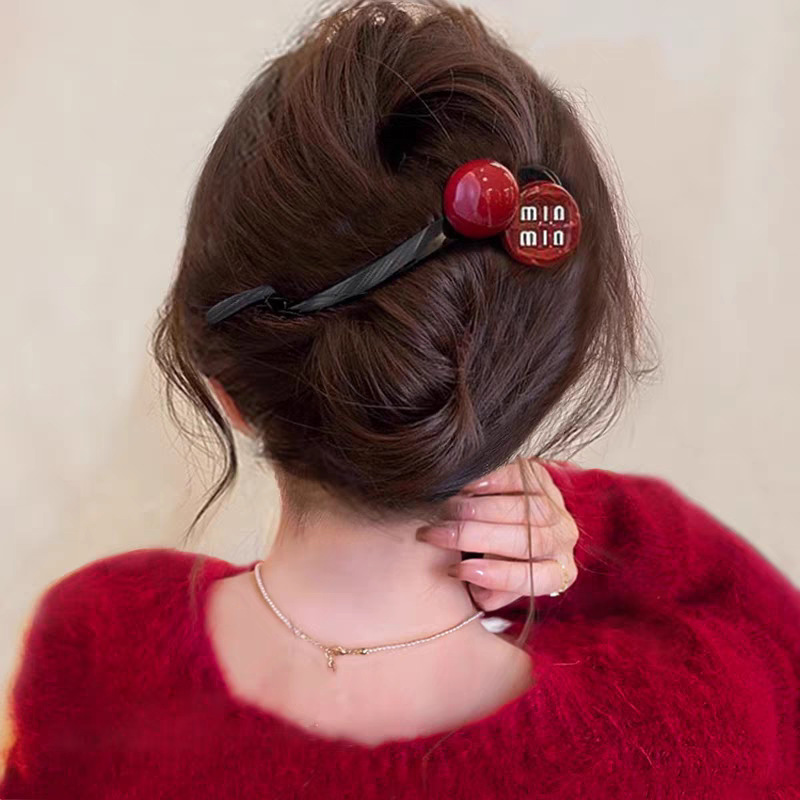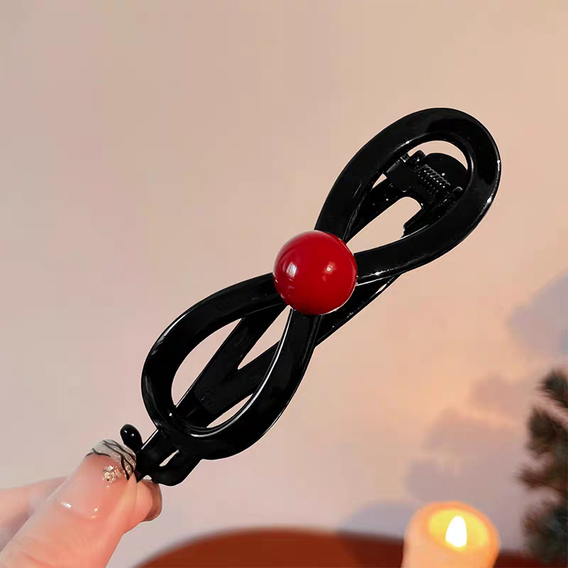 13# Bright black hollowed-out bow with red beads, approximately 11.5cm