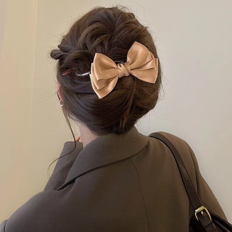62# Bright Black hollowed-out bow Champagne grey pearl 12cm
