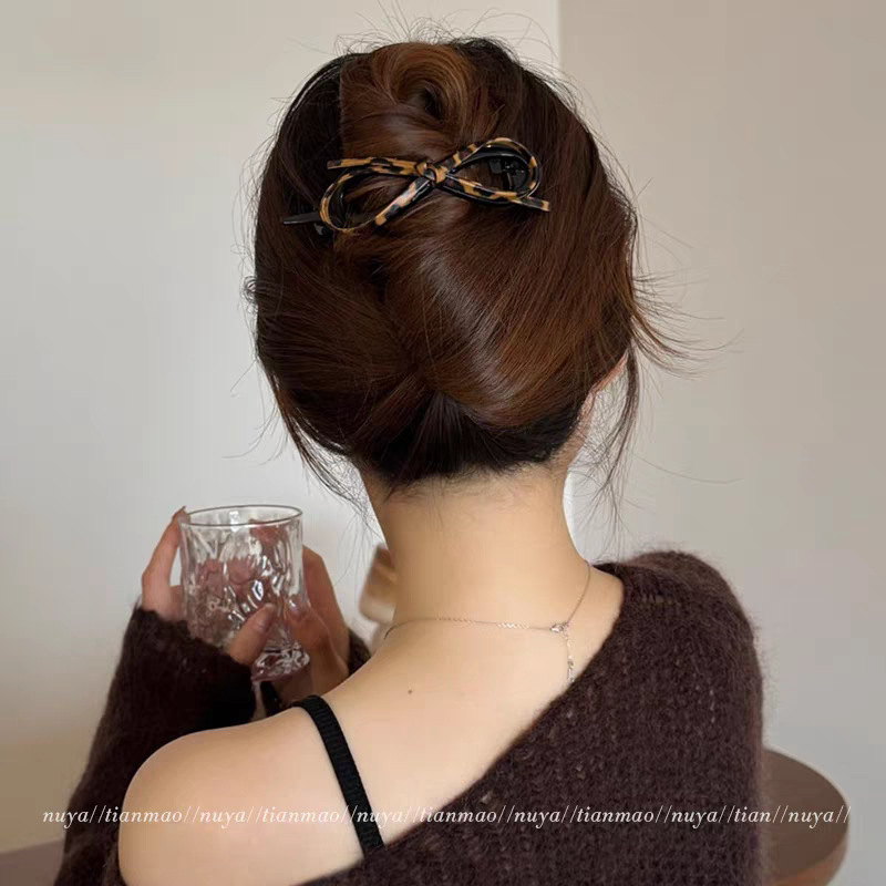 68# Leopard print cat hollowed-out bow, greyish, twisted, 12cm