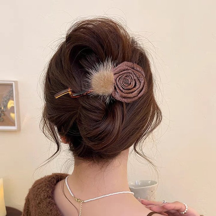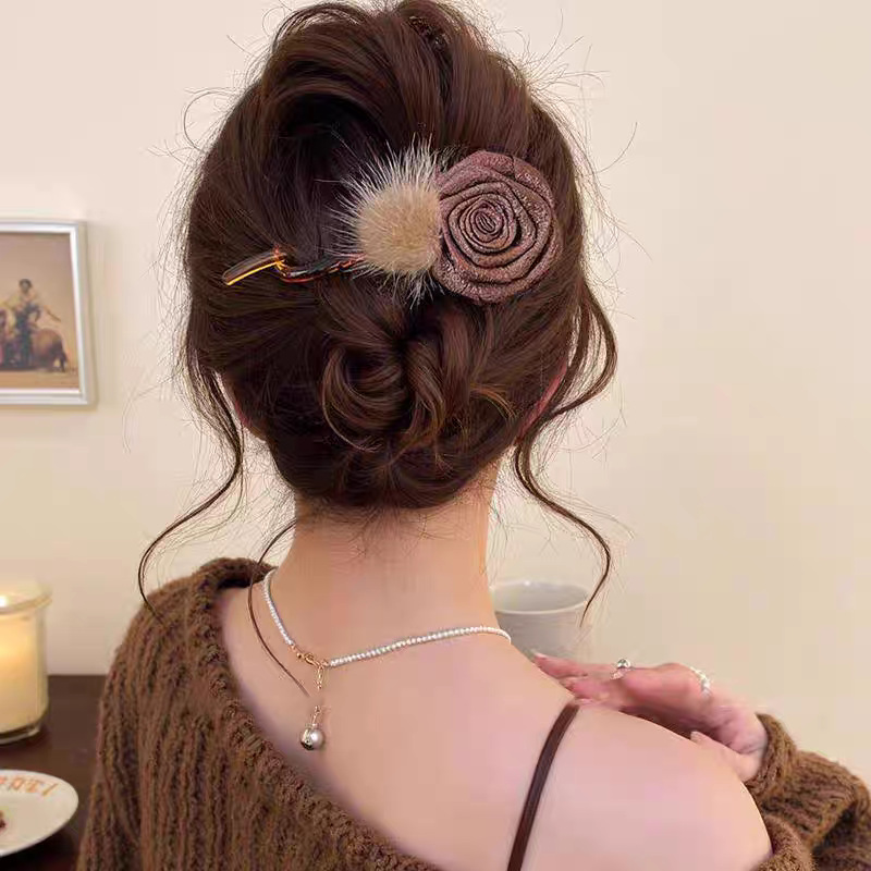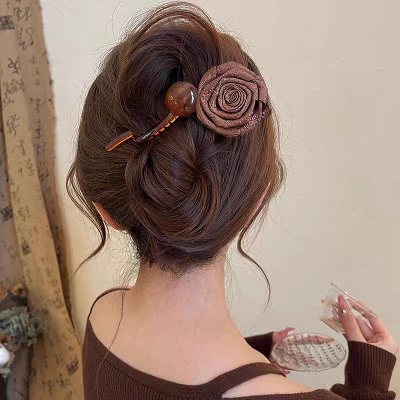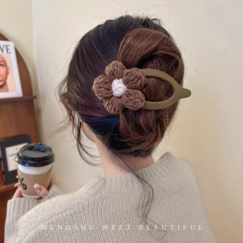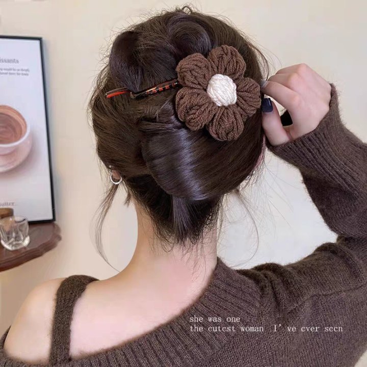 40# coffee-colored wool flower, approximately 11cm twisted clip