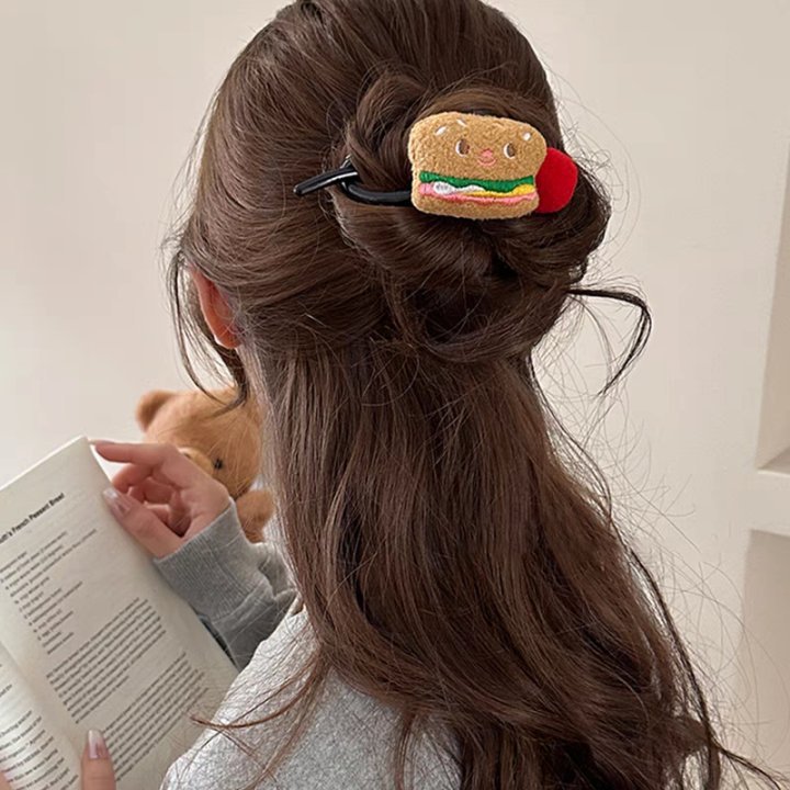 No. 53 red pom-pom hamburger, about 11cm with a twist clip
