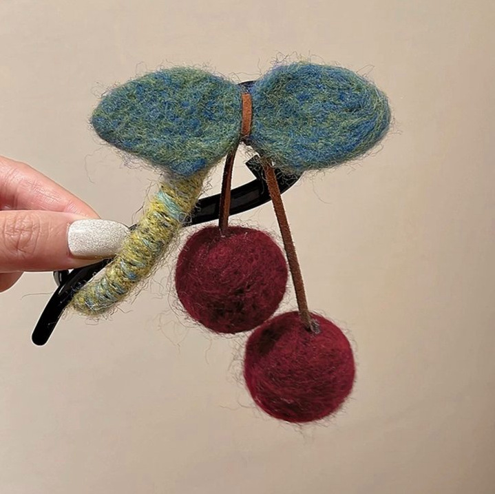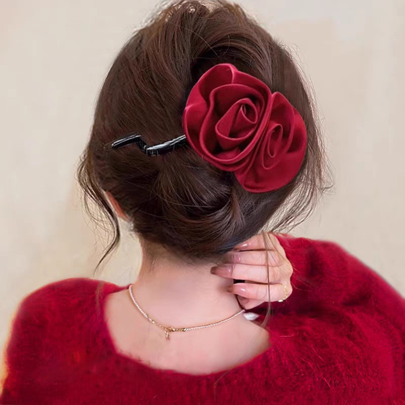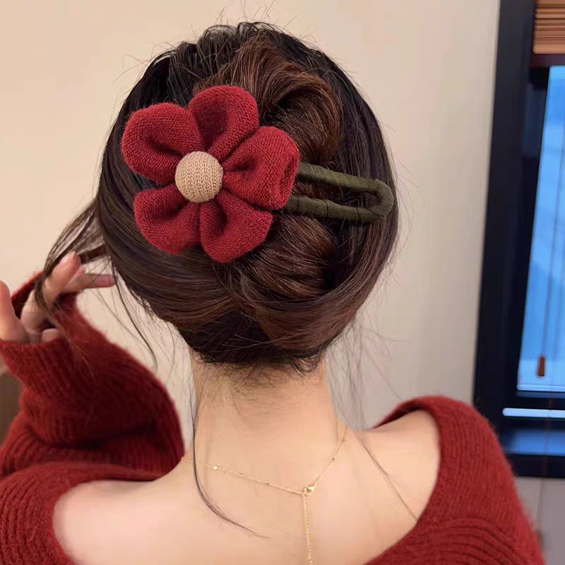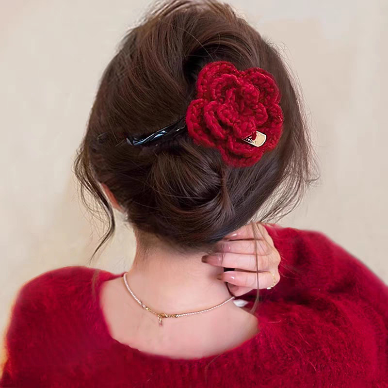 45# Red woolen large flowered duckbill grabber -11.5cm