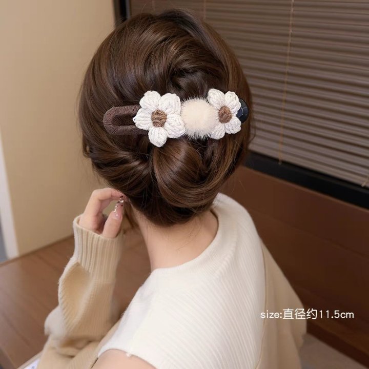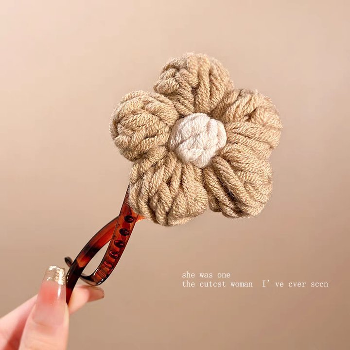 42# Khaki wool flower twist clip about 11cm
