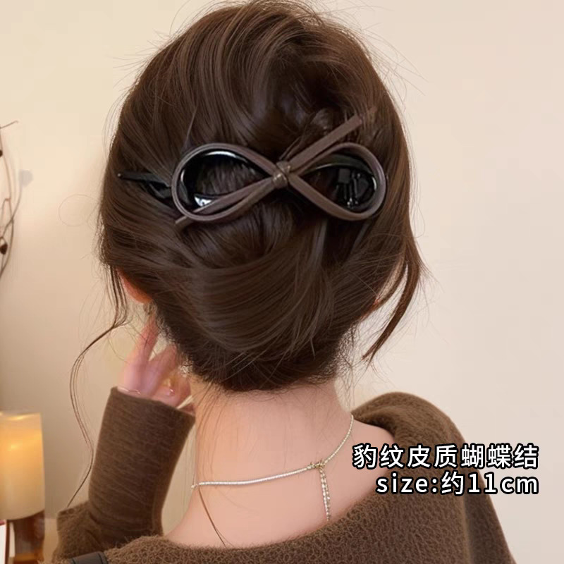 The 8# leopard print leather bow is approximately 11.5cm long
