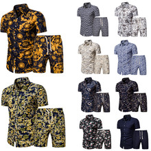 | Summer youth floral printed shirt set for men, beach multi-color loose short-sleeved shirt and shorts two-piece set for men |