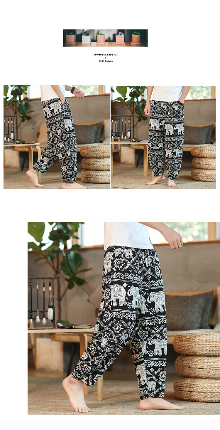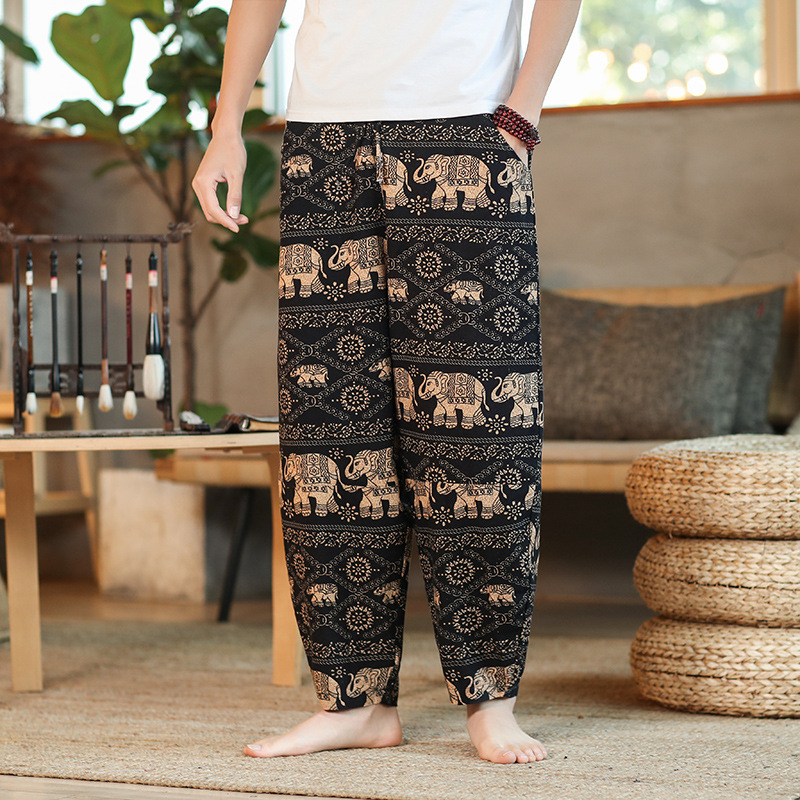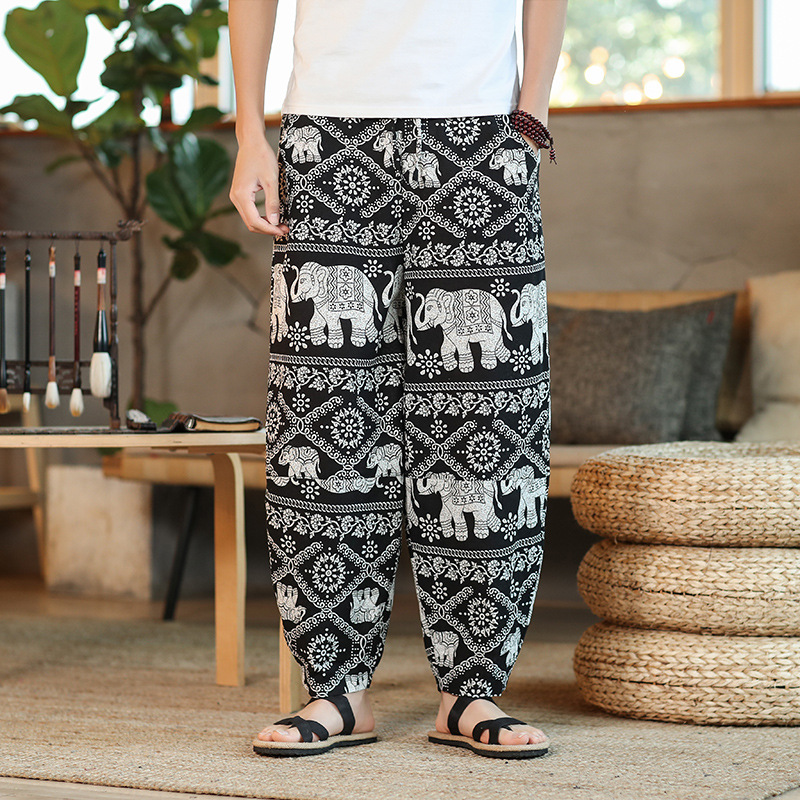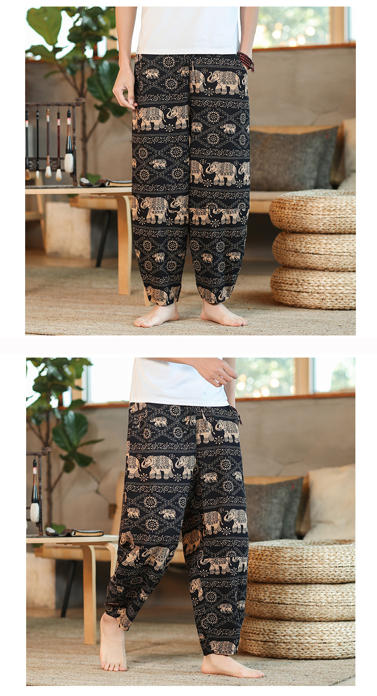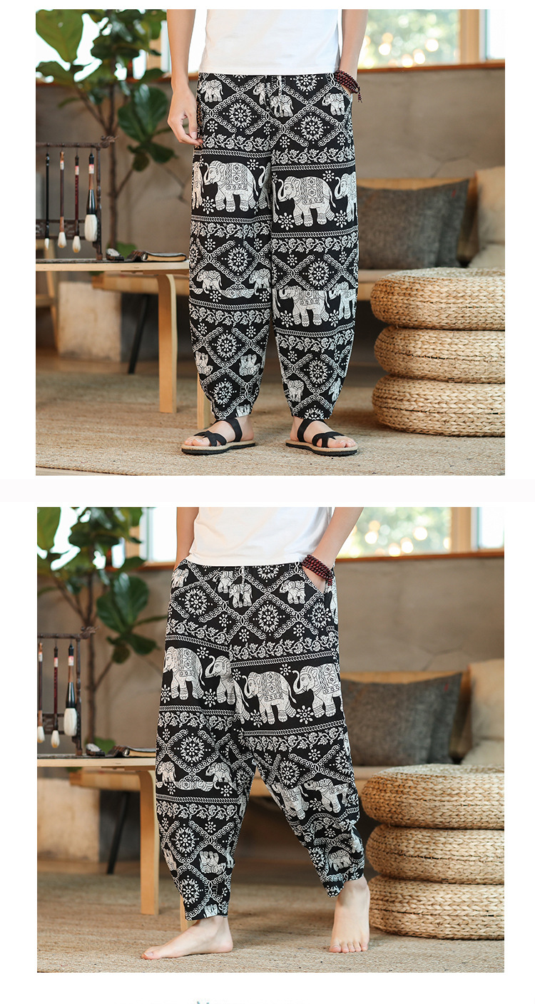 | 2022 Men's summer thin loose cotton and linen capriel pants Solid color loose casual pants Men's large-sized lace-up pants |