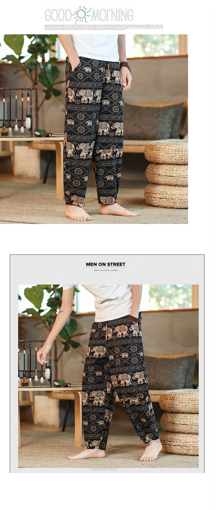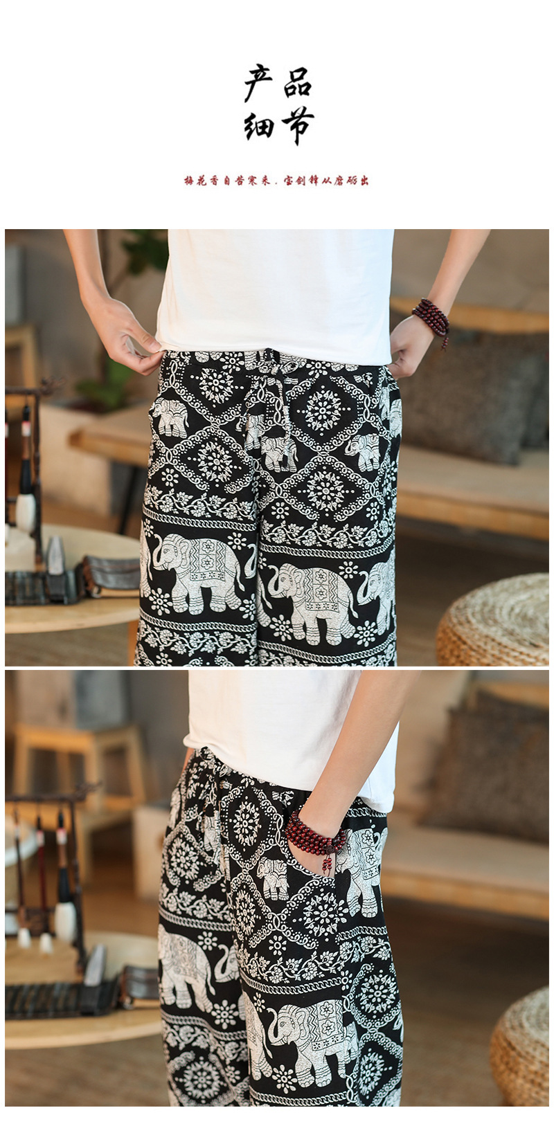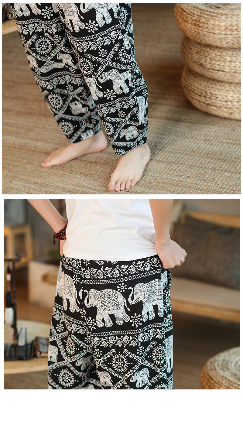 | 2022 Men's summer thin loose cotton and linen capriel pants Solid color loose casual pants Men's large-sized lace-up pants |