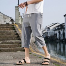 | Men's summer cotton and linen casual capri pants, youth export straight leg simple and versatile running sports shorts for men |
