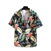 | Summer men's casual loose shirt, 9-color youth pattern shirt, beach vacation short-sleeved shirt, men's top |
