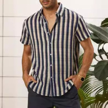 | Floral shirt short-sleeved summer export men's striped shirt, trendy loose large-sized lapel shirt men's top |