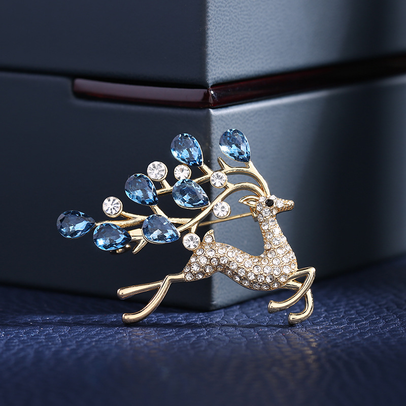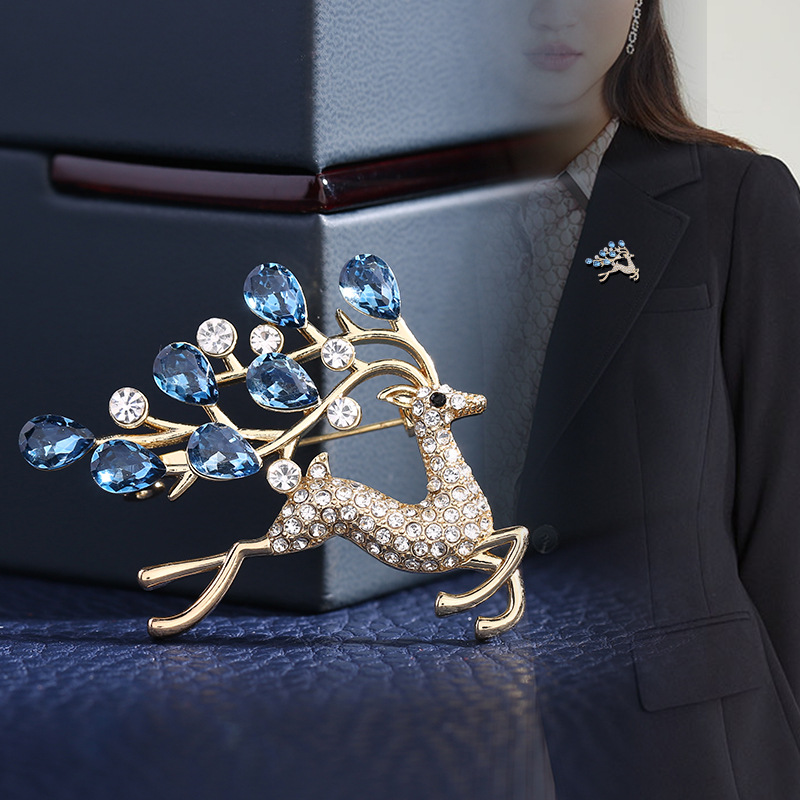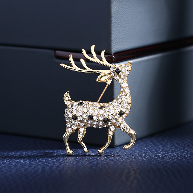 Elk brooch, women's anti-exposure clasp, rhinestone metal badge, animal brooch, clothing silk scarf, fixed collar pin, safety pin