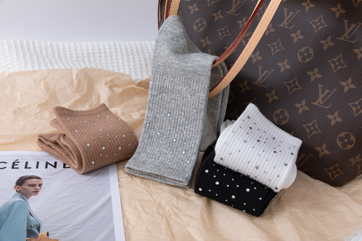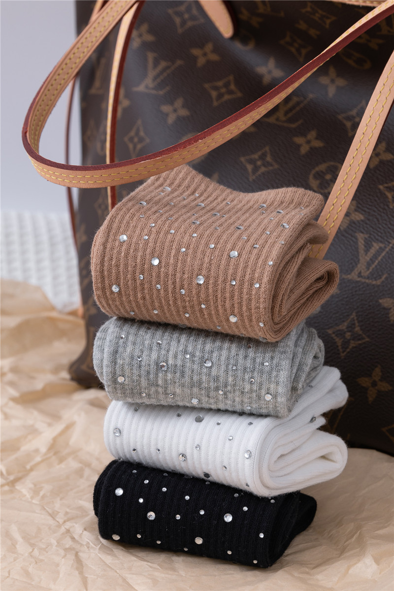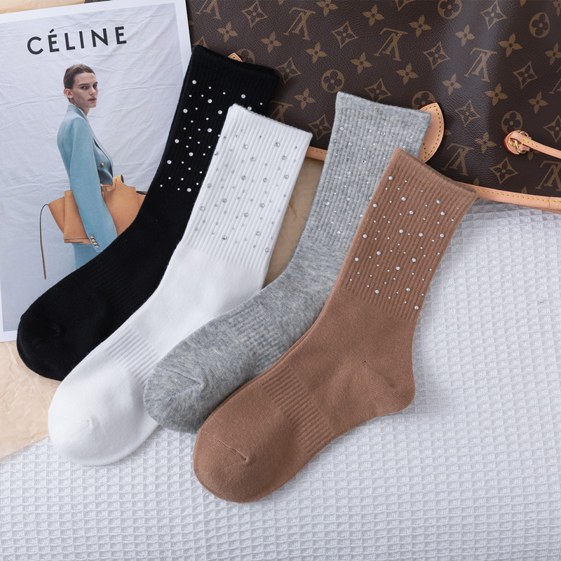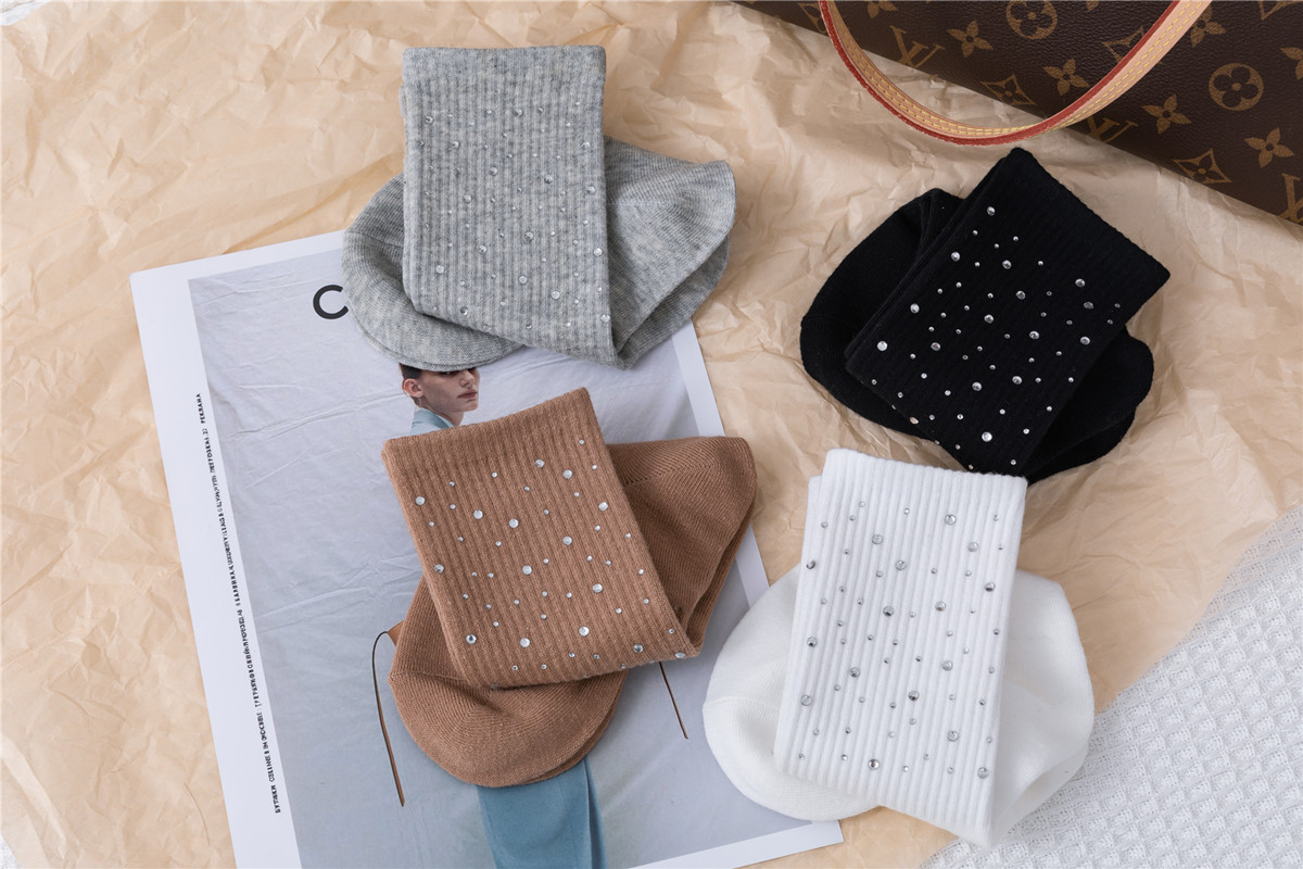 Embossed diamond starry sky socks, light luxury and simple embossed water diamond mid-calf women's socks, versatile and fashionable cotton socks for all seasons
