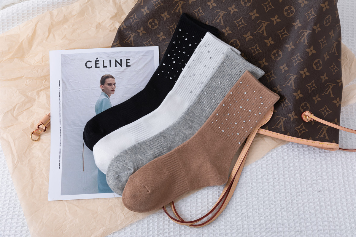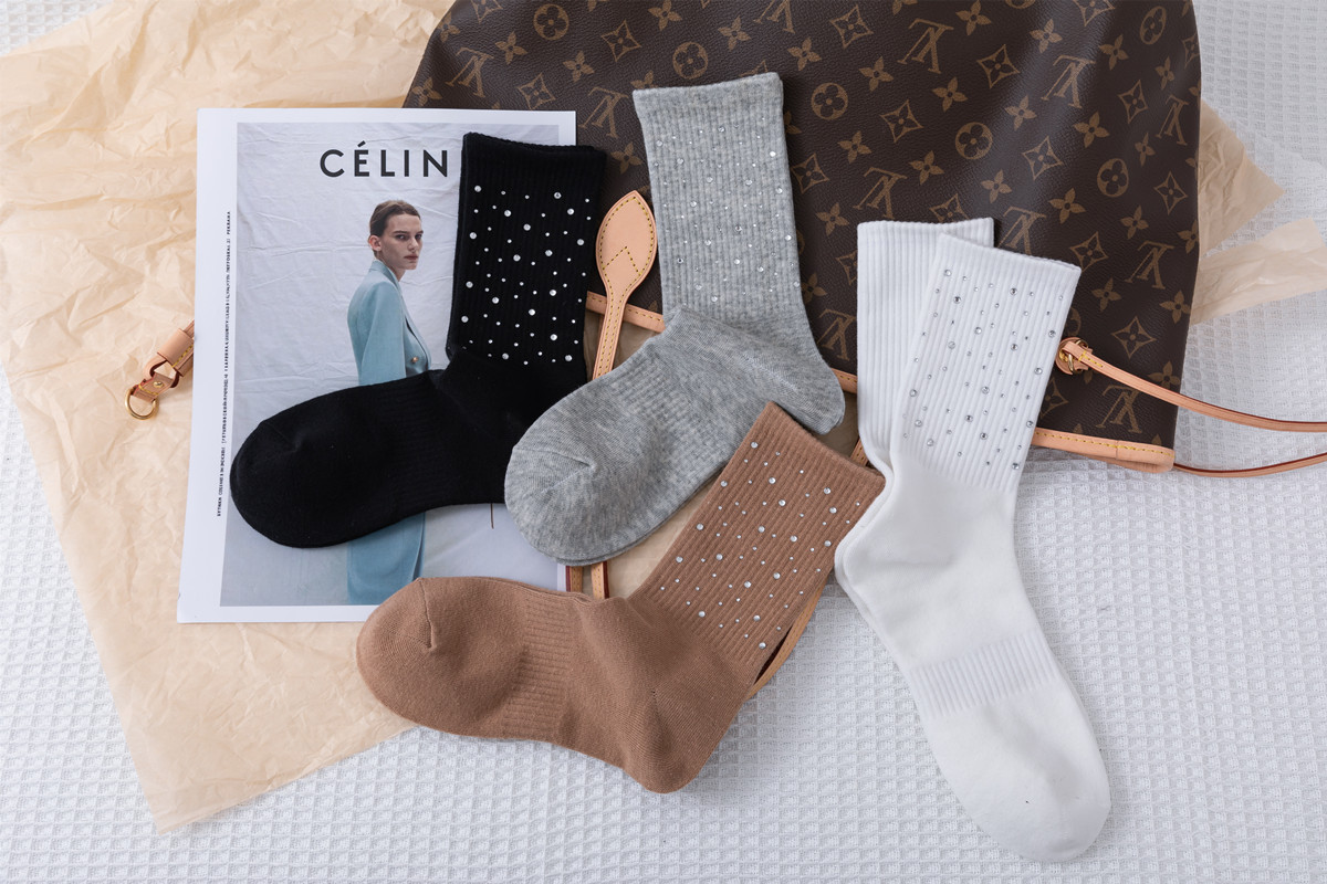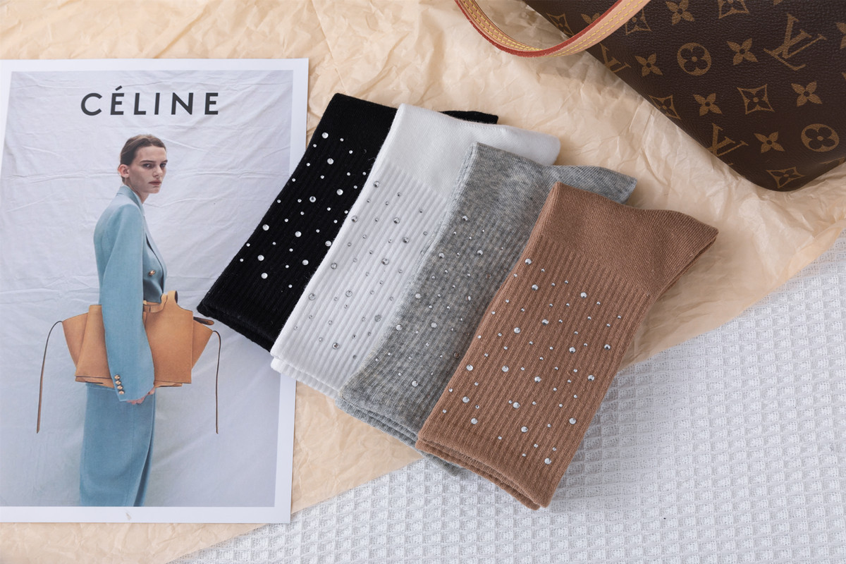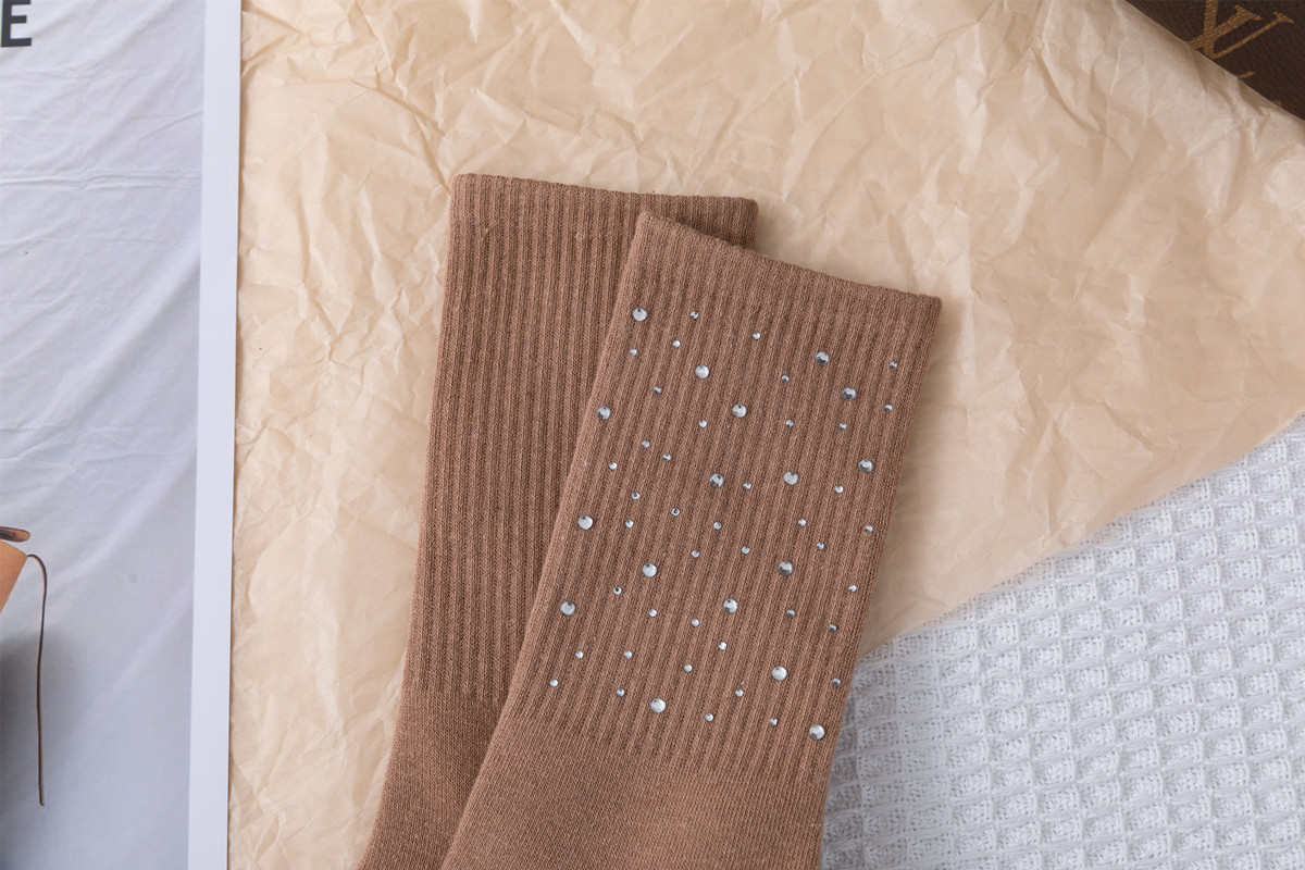 Embossed diamond starry sky socks, light luxury and simple embossed water diamond mid-calf women's socks, versatile and fashionable cotton socks for all seasons
