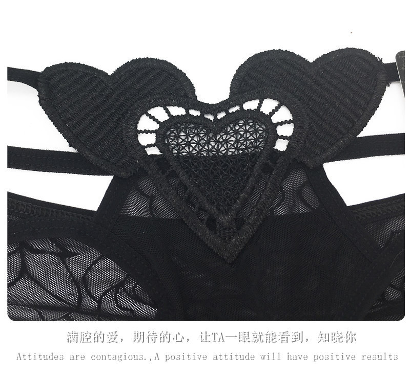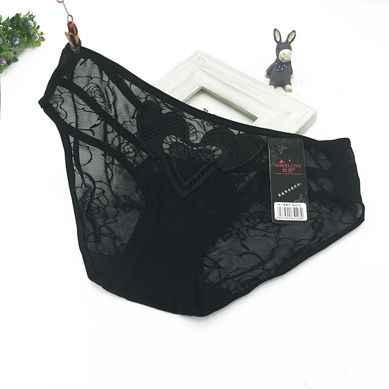 Embroidered heart-shaped hollowed-out women's underwear, women's lace low-waist sexy underwear 970