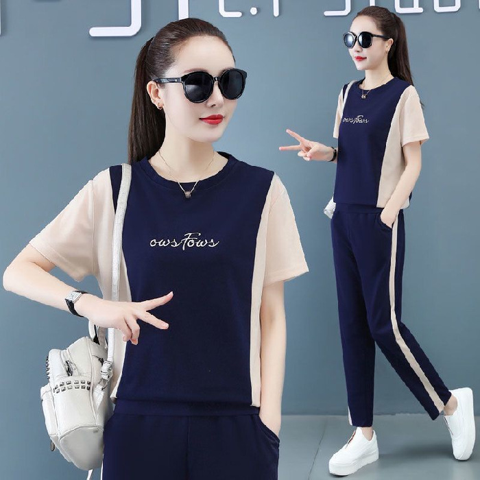 Embroidered sportswear for women, a stylish summer casual wear, a new large-sized short-sleeved shirt and long pants, a fashionable two-piece set