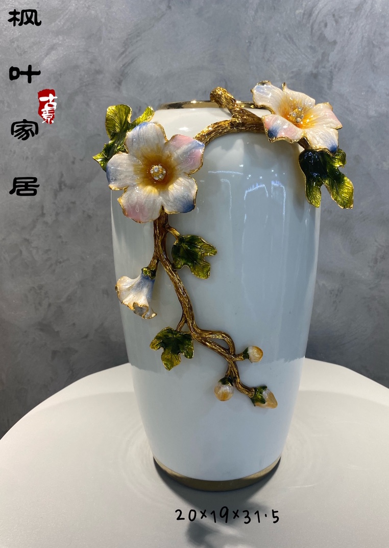 Enamel color handcrafted zinc alloy high-end ceramic vase decoration, living room entrance hall European-style home flower arrangement decoration