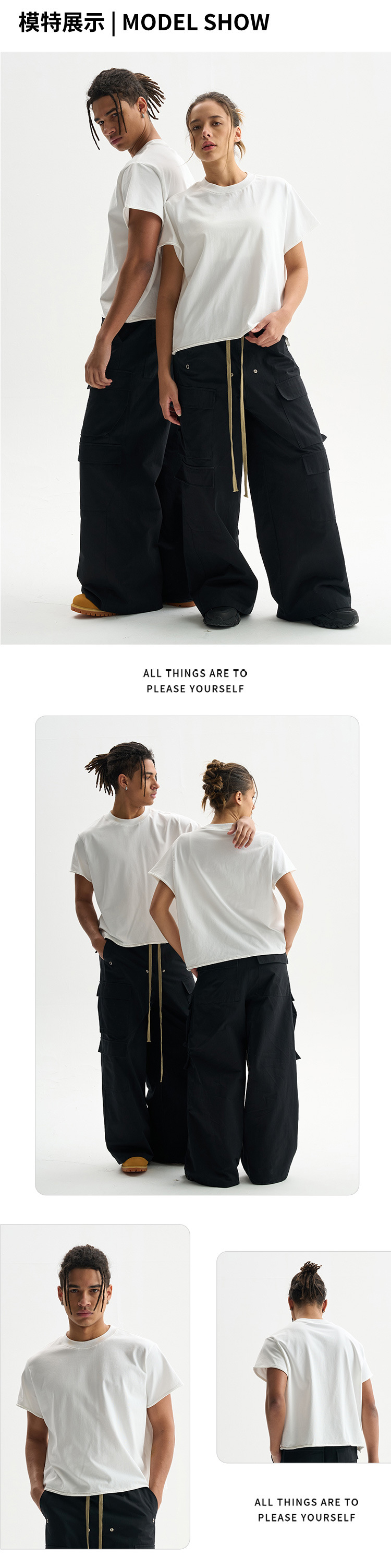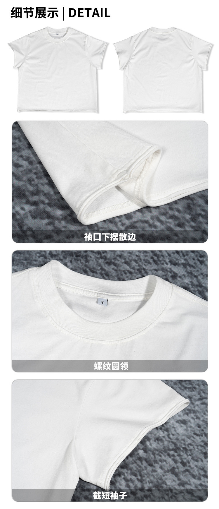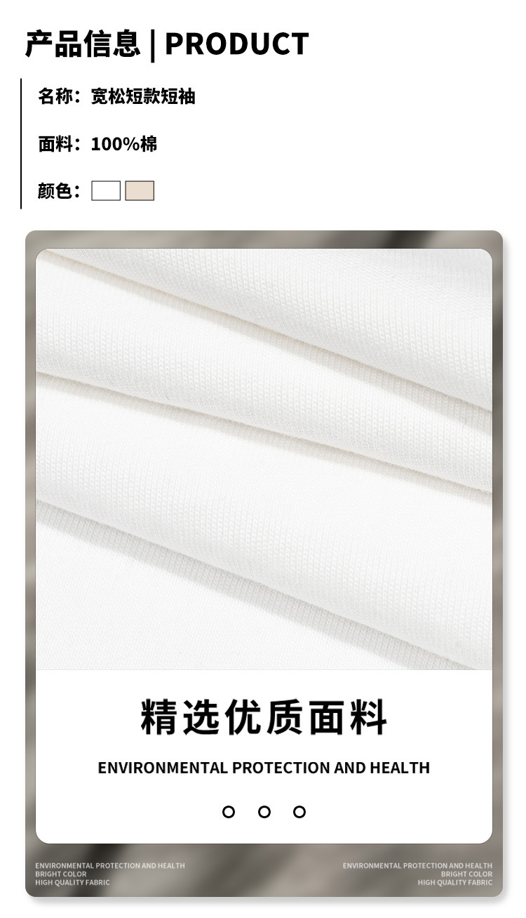 ETAI men's Wear: A trendy brand, high-quality pure cotton loose short solid-color short-sleeved T-shirt with truncated sleeves, loose edges and round neck