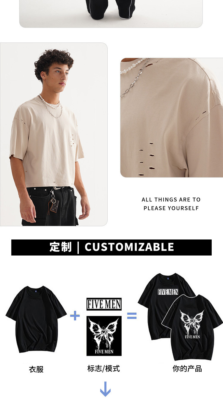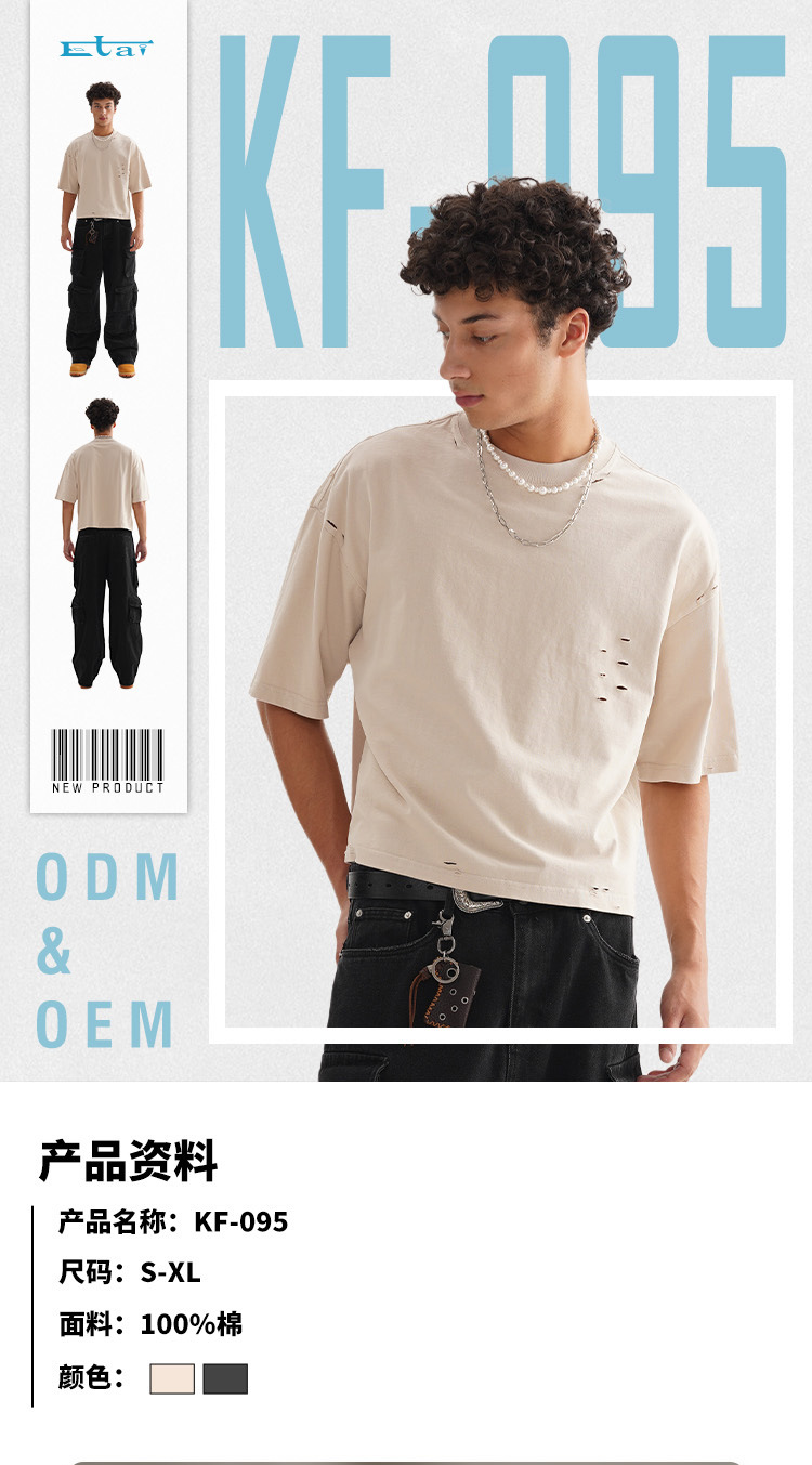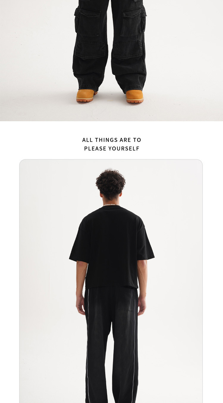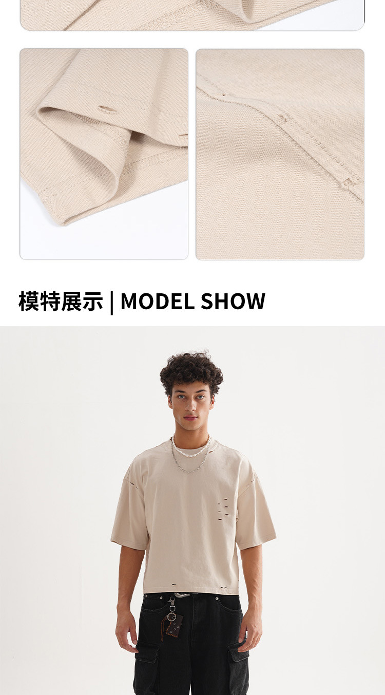 ETAI Men's Wear: American street trend retro polished solid color men's T-shirt, high-quality and heavyweight 100% cotton short wide short-sleeved