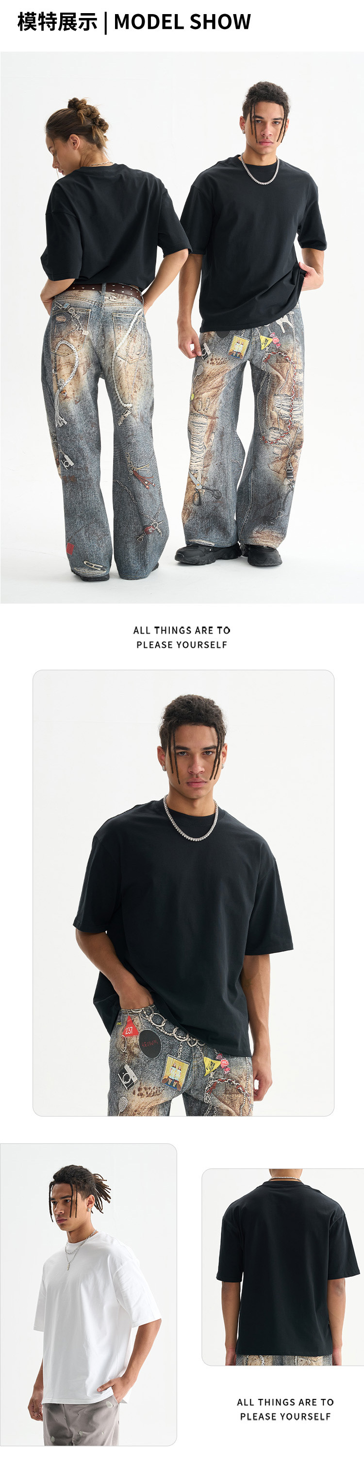 ETAI men's Wear: High-end boxy short-sleeved men's T-shirt, a trendy men's wear brand, solid color series, small neckline, pure cotton short-sleeved